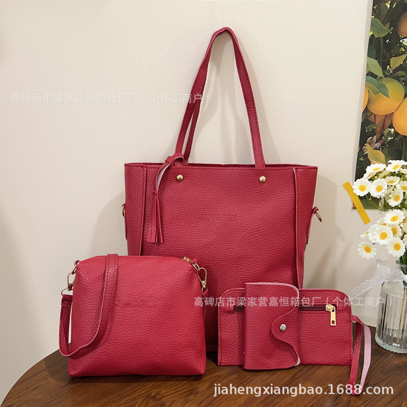 2025新款荔枝纹四件套女包时尚简约欧美百搭手提包包大容量女包潮
