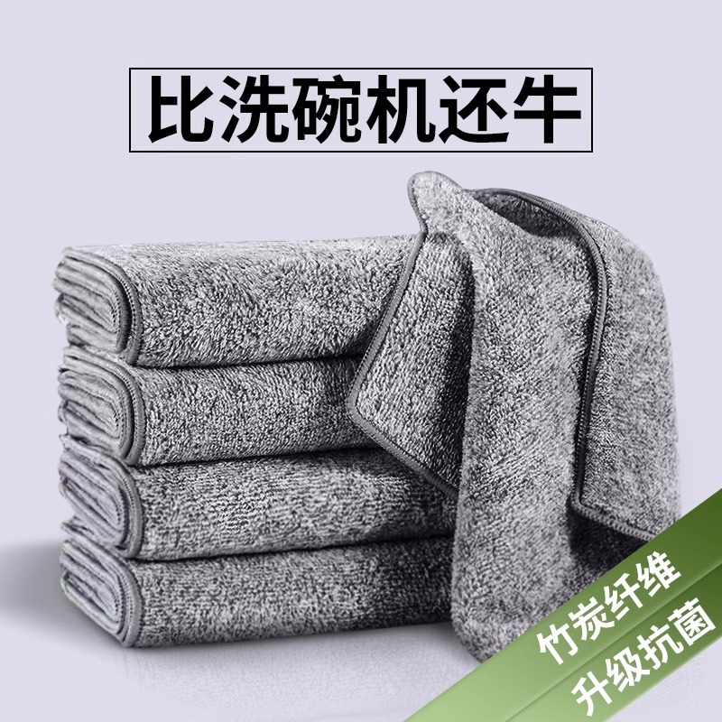 厚みのある竹炭繊維の食器用布、油がつきにくく、吸水性が高く、キッチンの掃除が簡単、家庭用の怠惰な掃除布