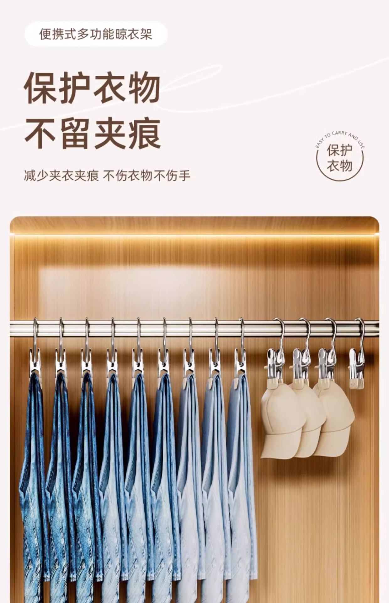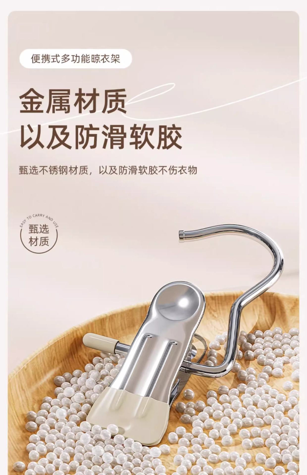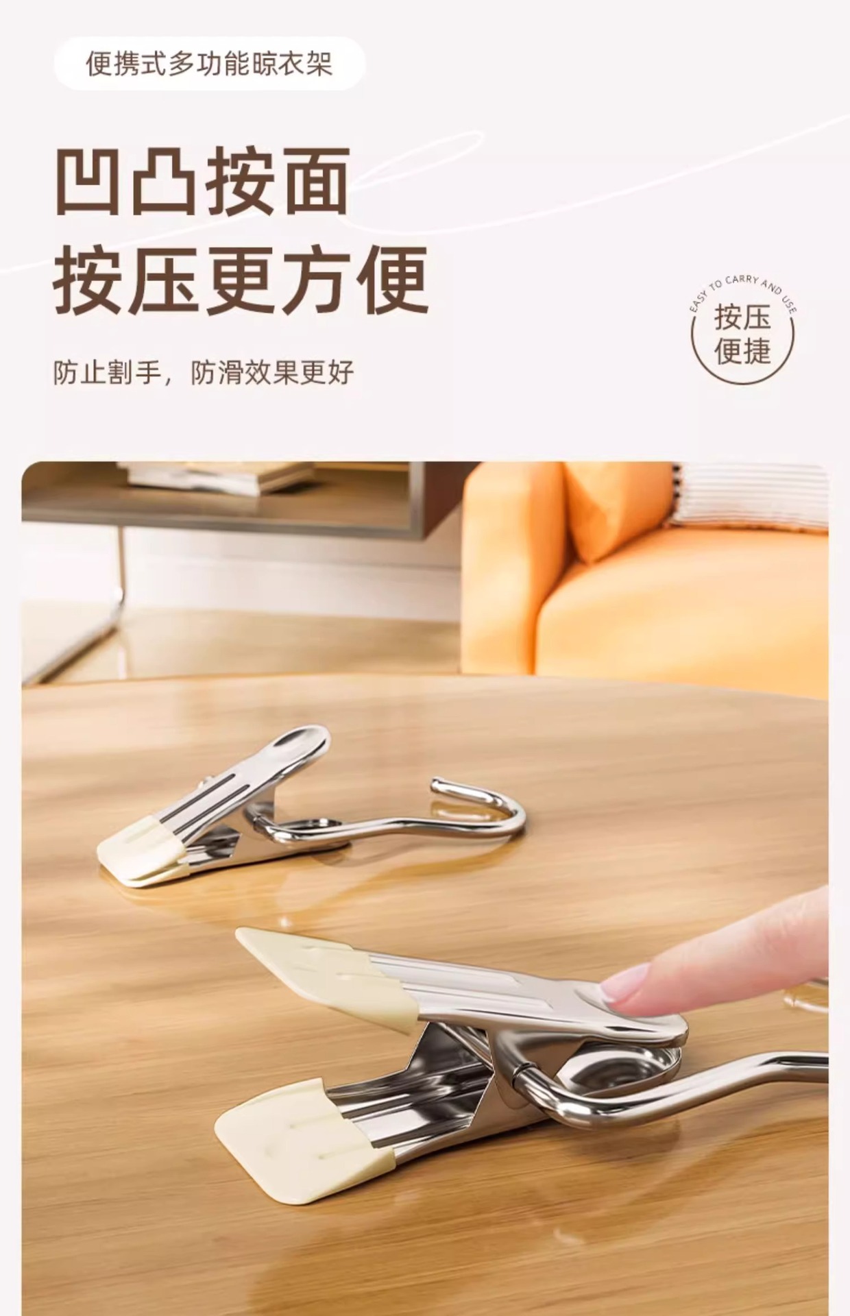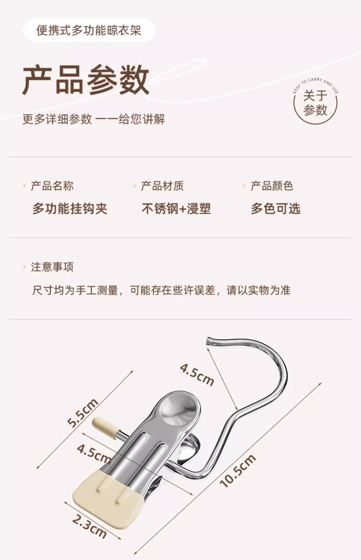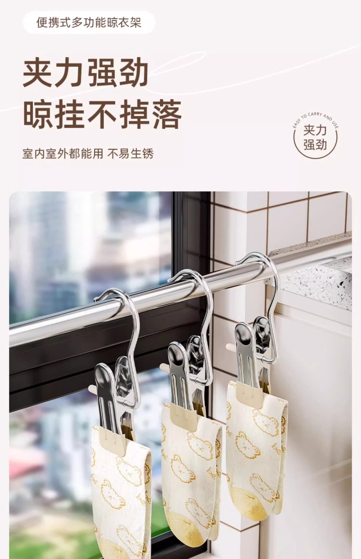 ステンレス物干しクリップ家庭用浸塑無痕フック付き靴下下着収納滑り止めマルチシーン干しクリップ