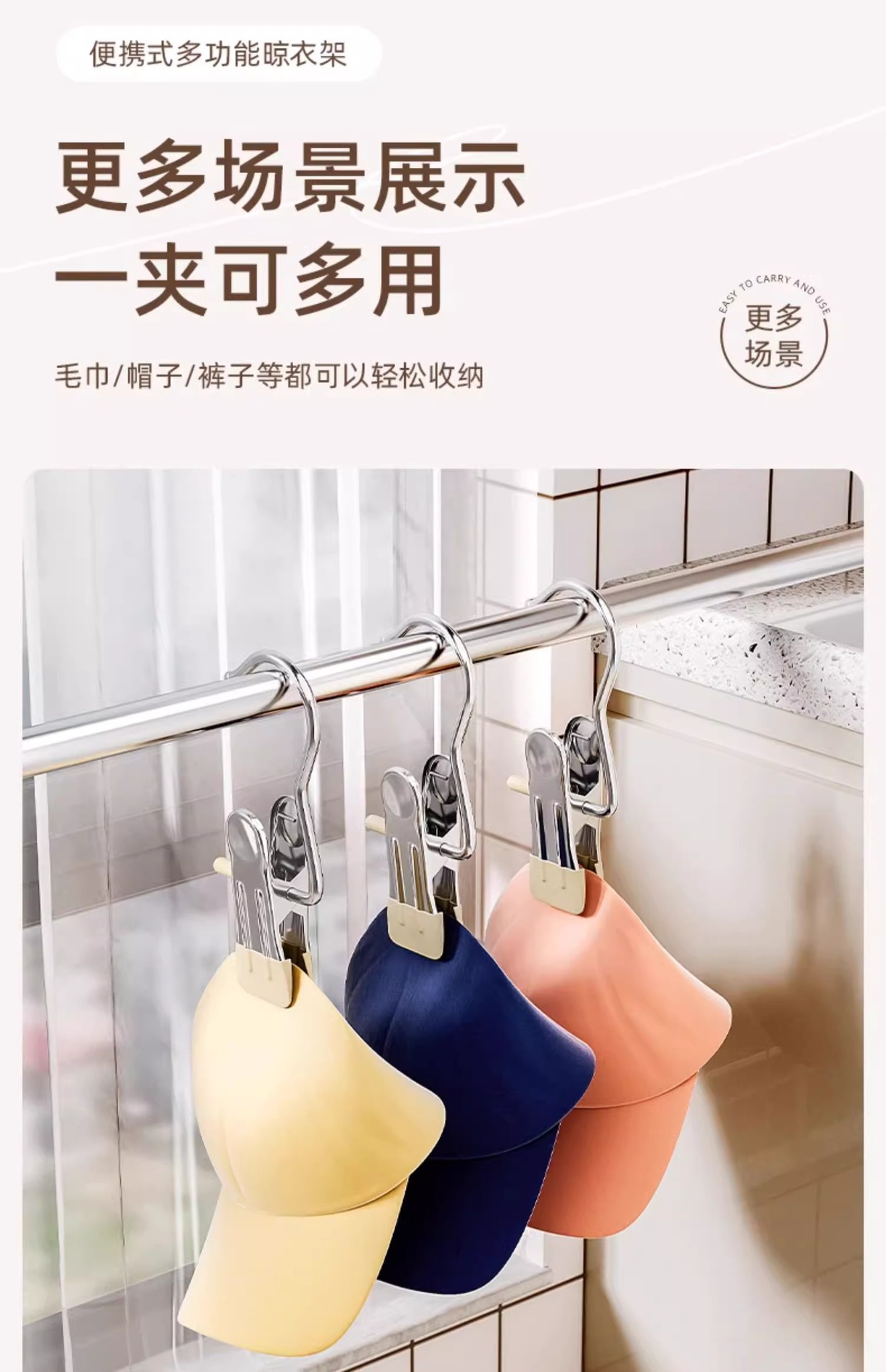 ステンレスフッククリップ浸塑フッククリップ無痕防風フックステンレス回転式物干しクリップ帽子
