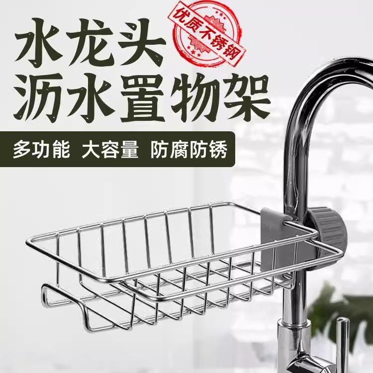 蛇口収納ラックキッチンステンレス鋼シンク収納ラック家庭用スポンジ雑巾食器洗い布排水ラックハンギングバスケット