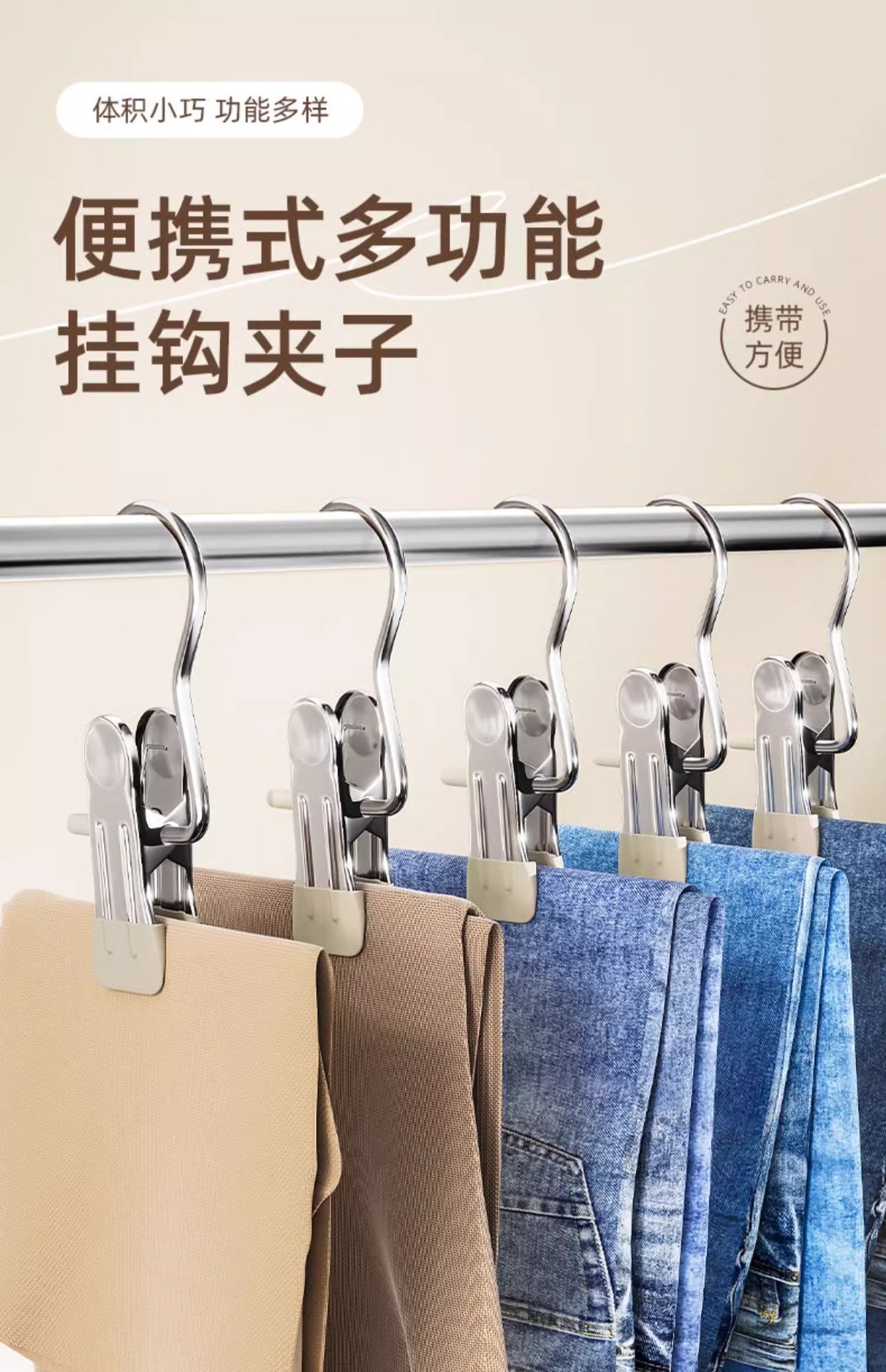 无痕裤夹多功能夹子带挂钩金属3字夹双头包塑升级款袜子晾晒夹子