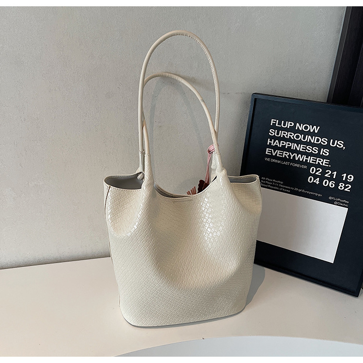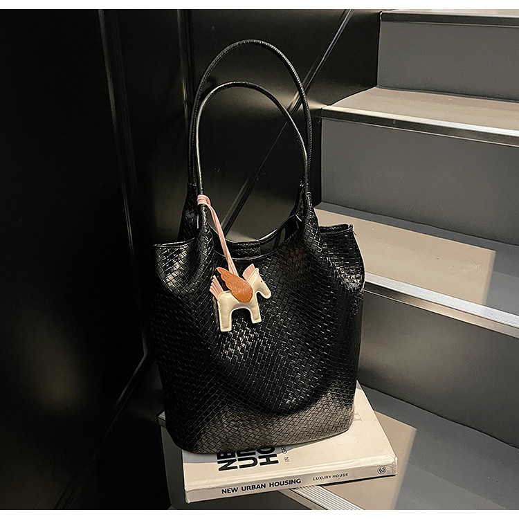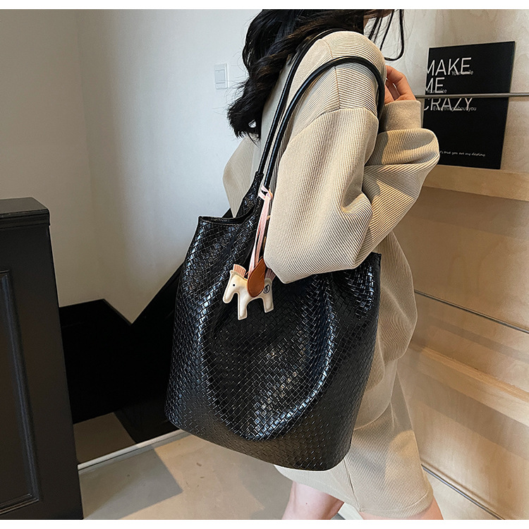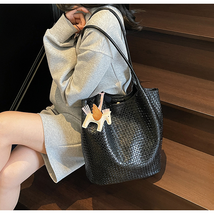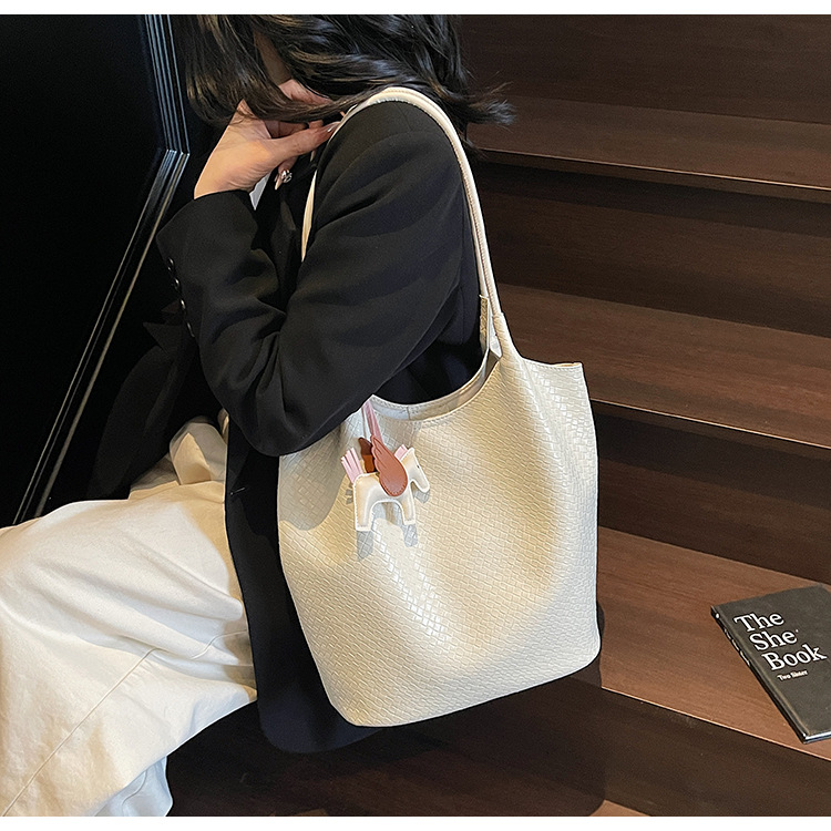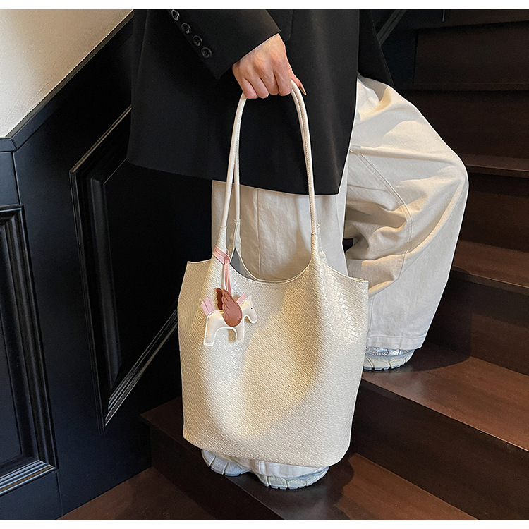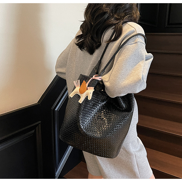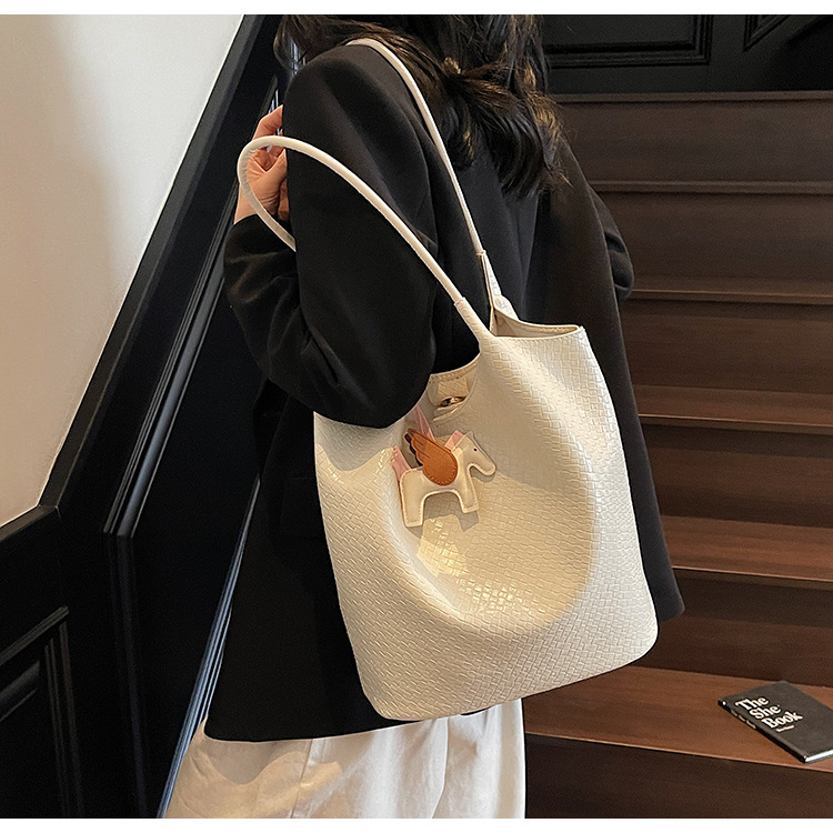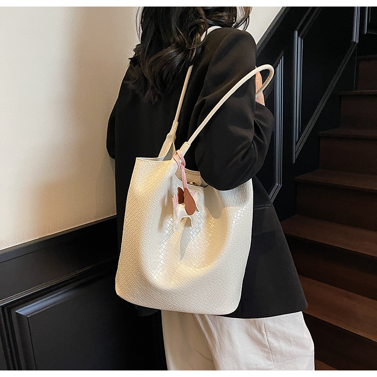 クロスボーダー織り柄大容量ワンショルダーポータブルバケットバッグ女性用2025新しい人気の通勤脇トートバッグ