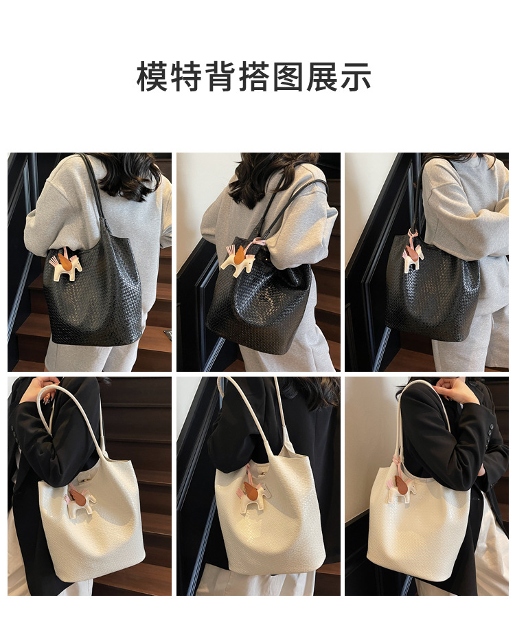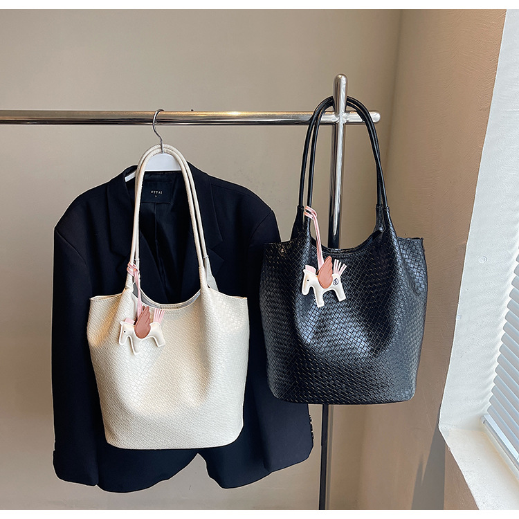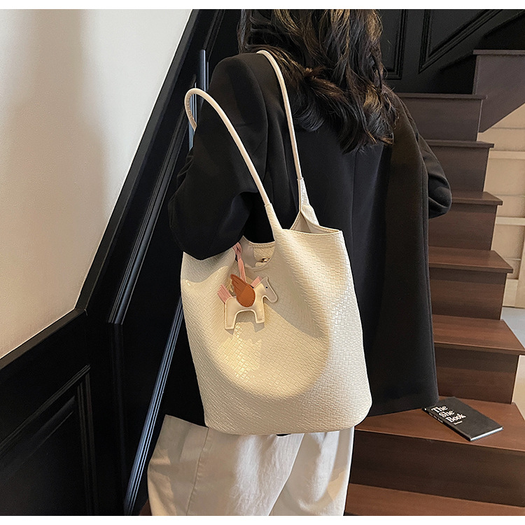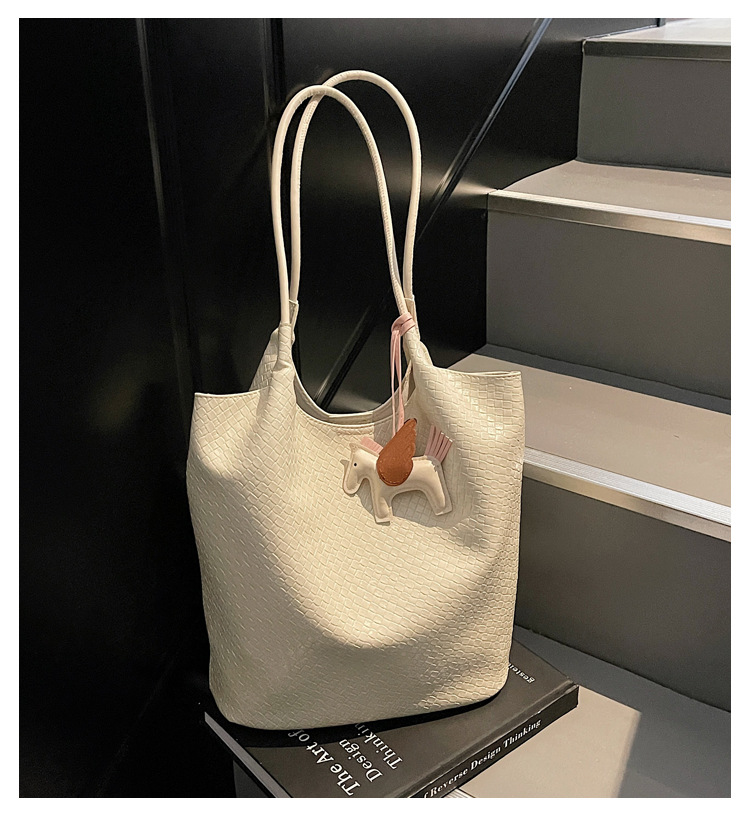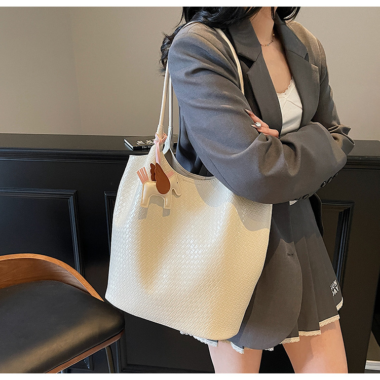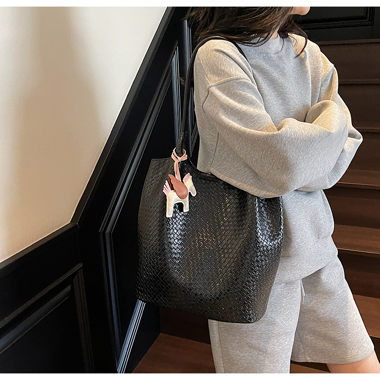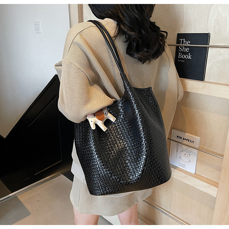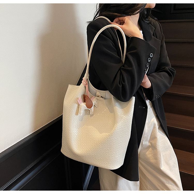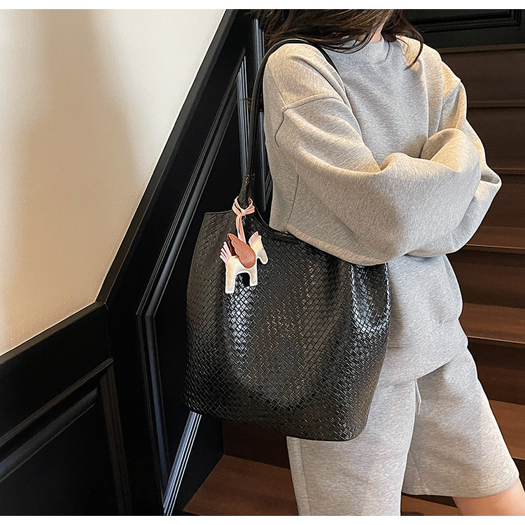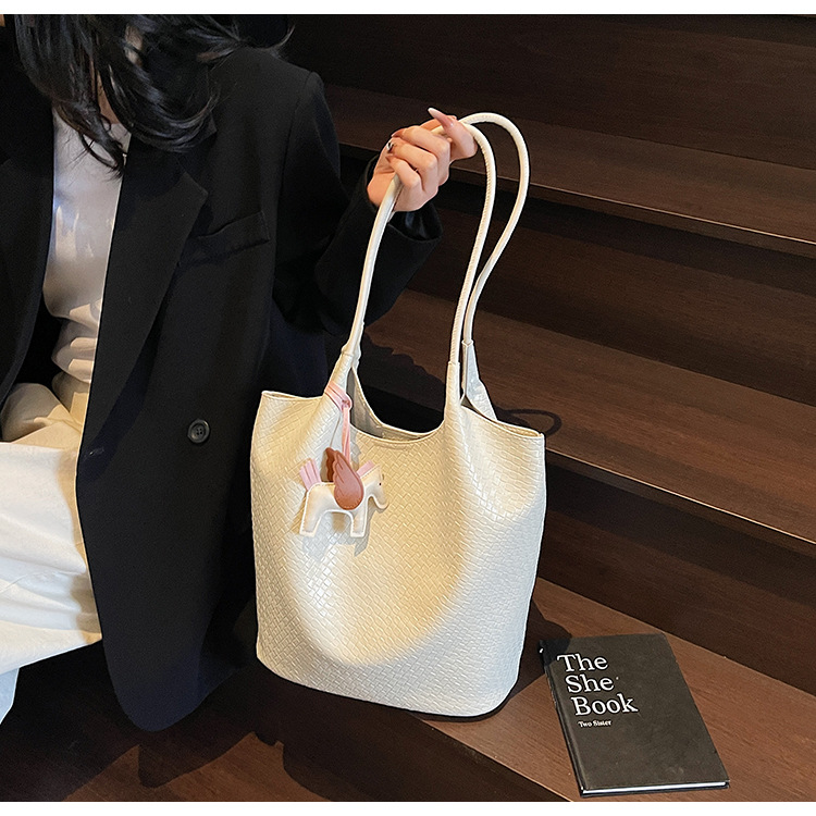 クロスボーダー織り柄大容量ワンショルダーポータブルバケットバッグ女性用2025新しい人気の通勤脇トートバッグ