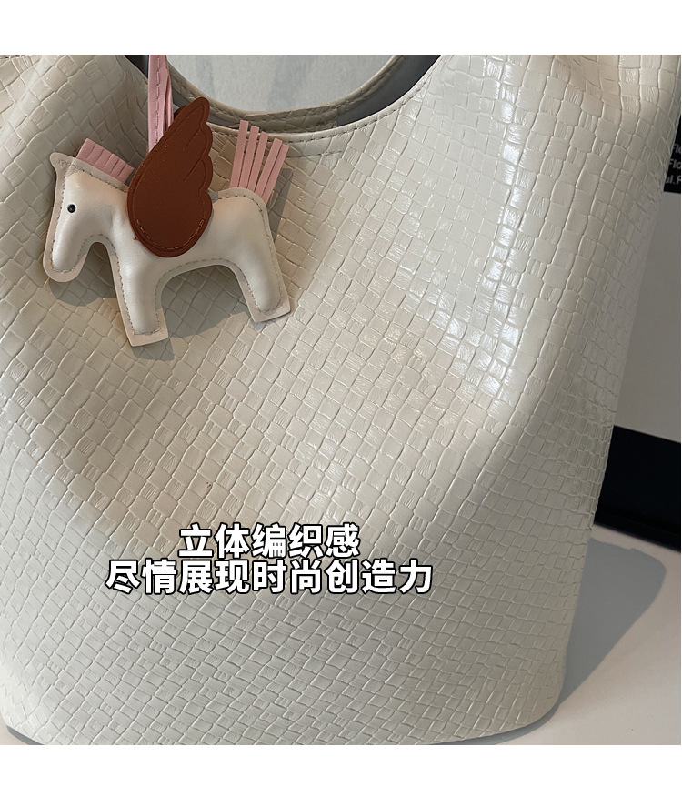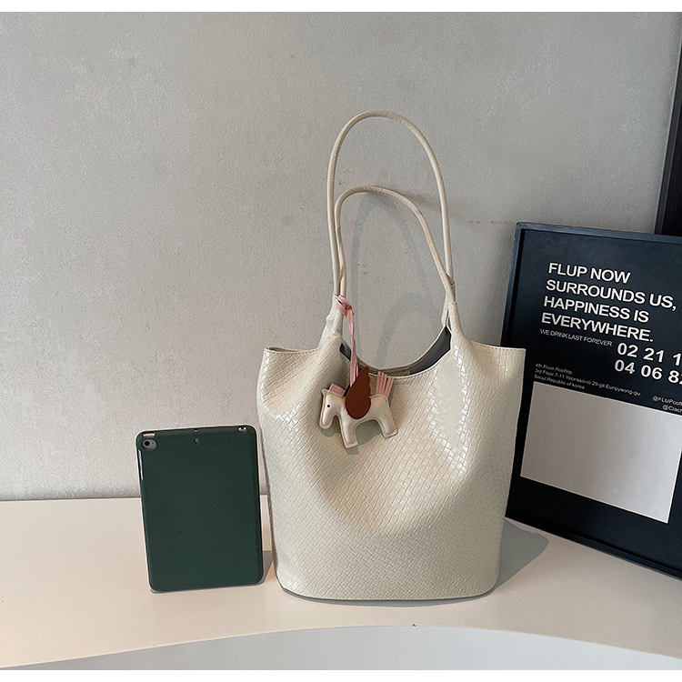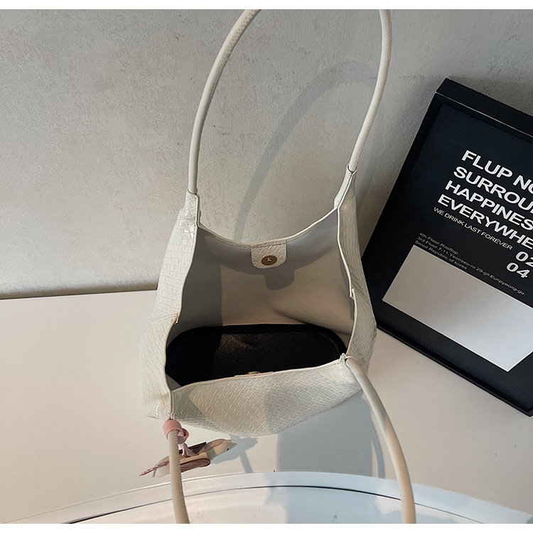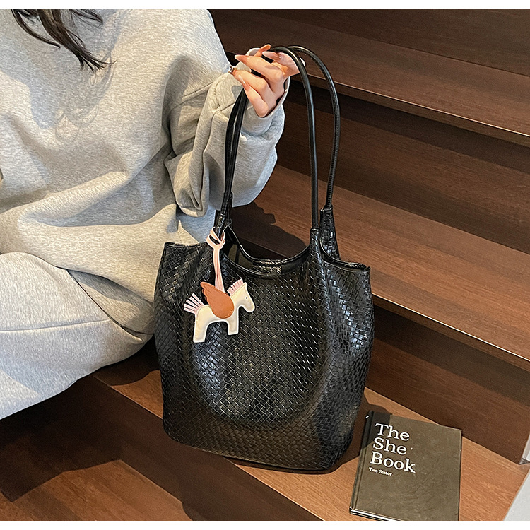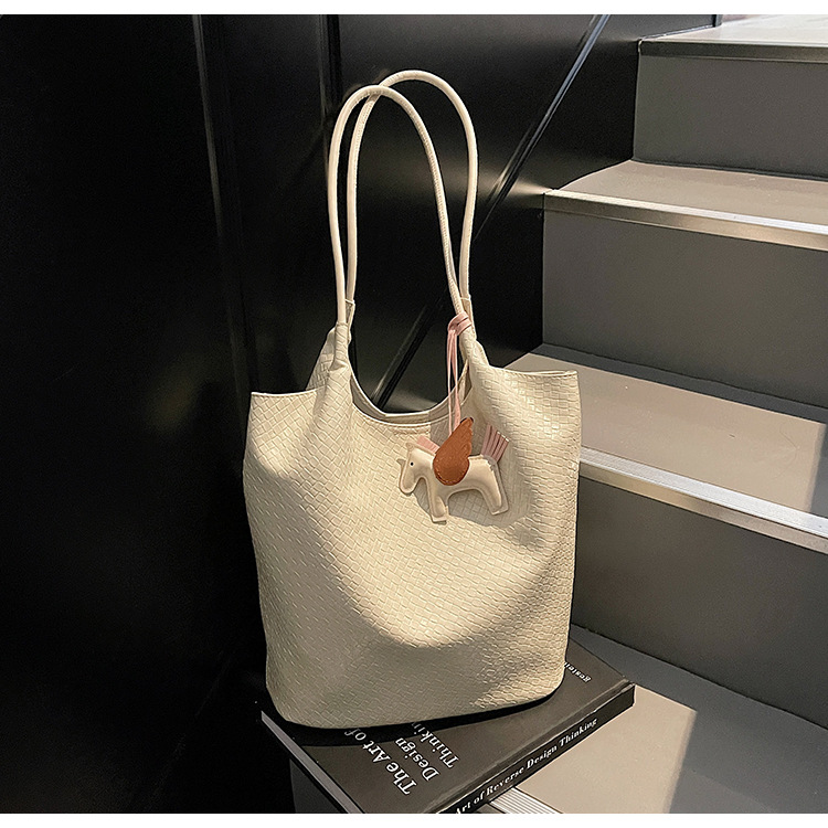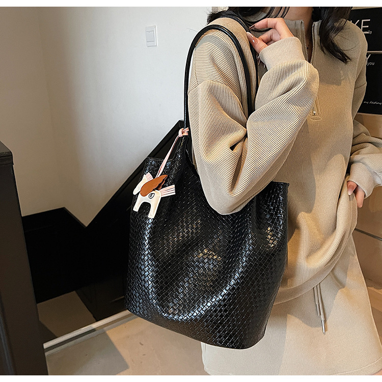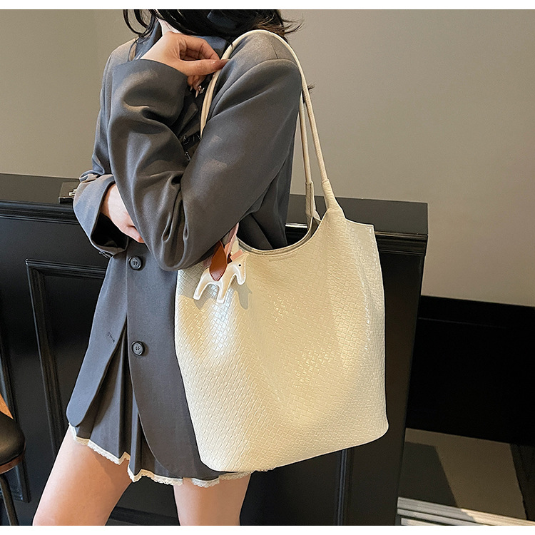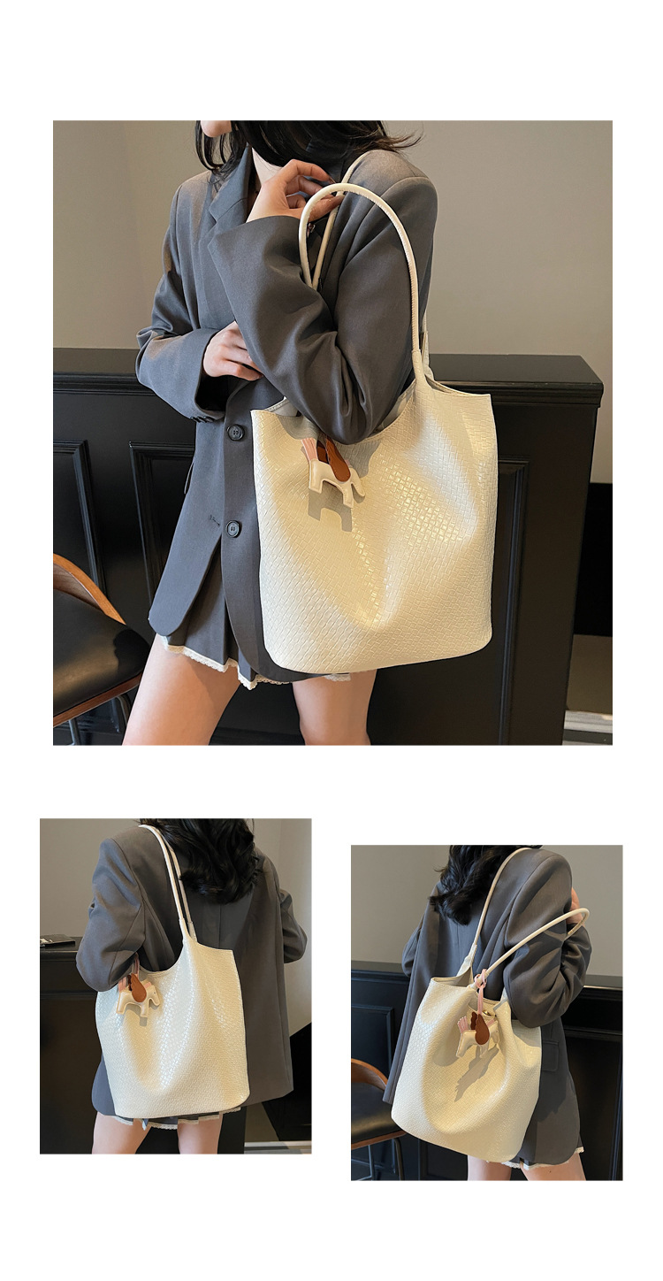 クロスボーダー織り柄大容量ワンショルダーポータブルバケットバッグ女性用2025新しい人気の通勤脇トートバッグ