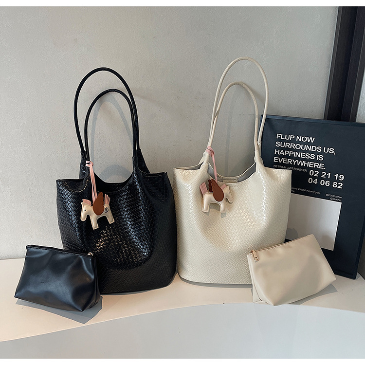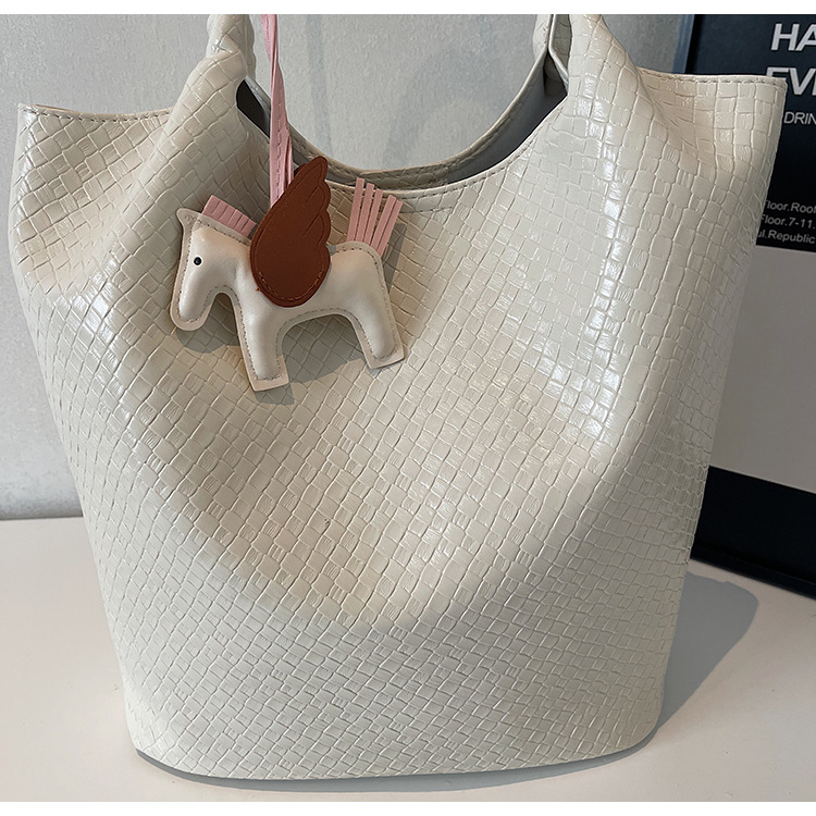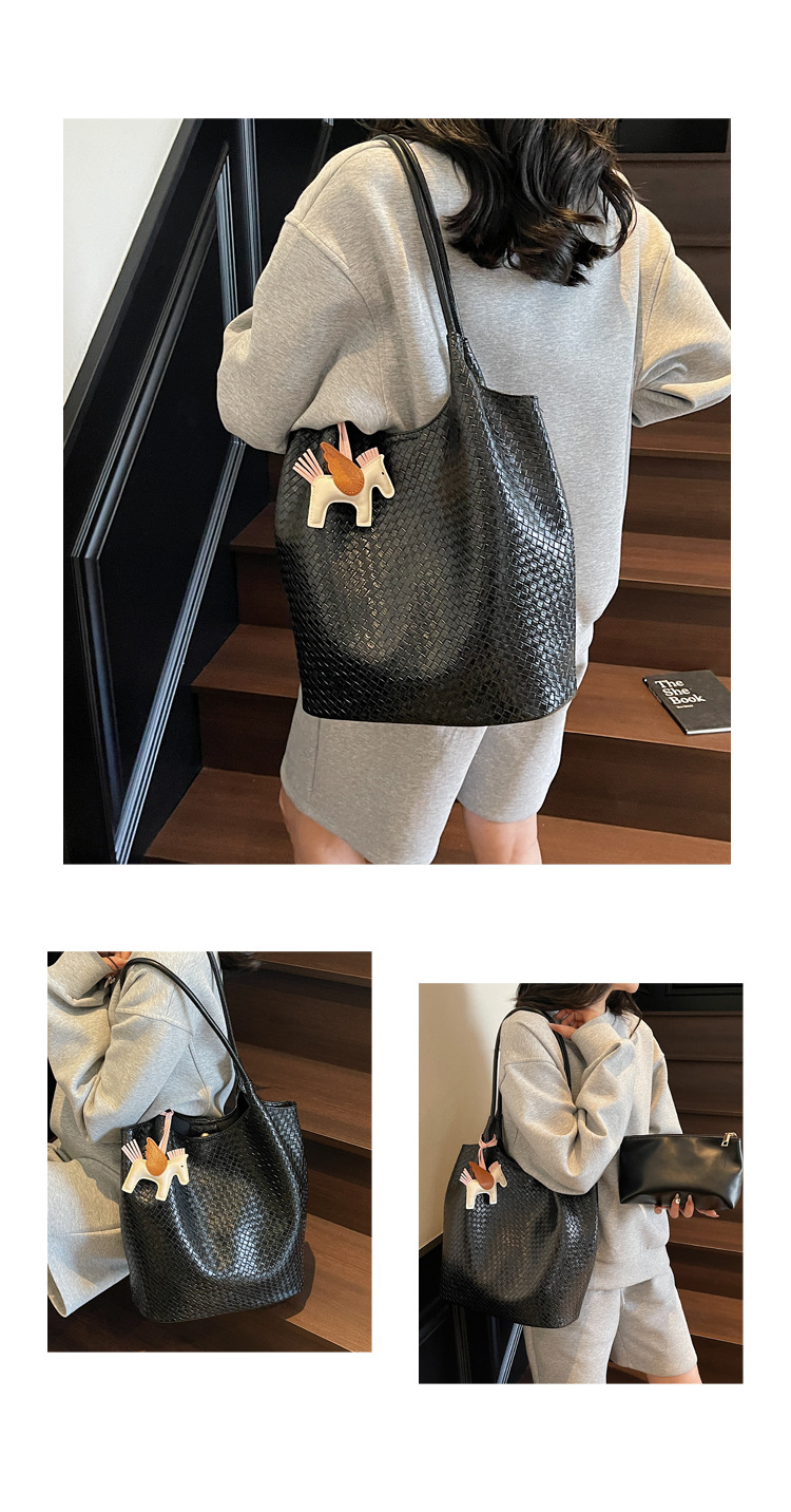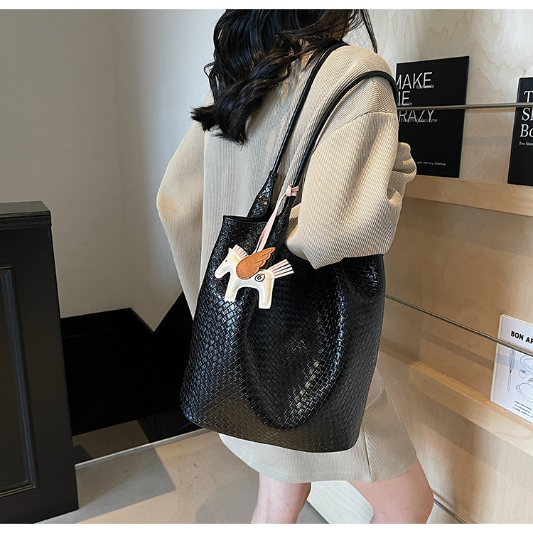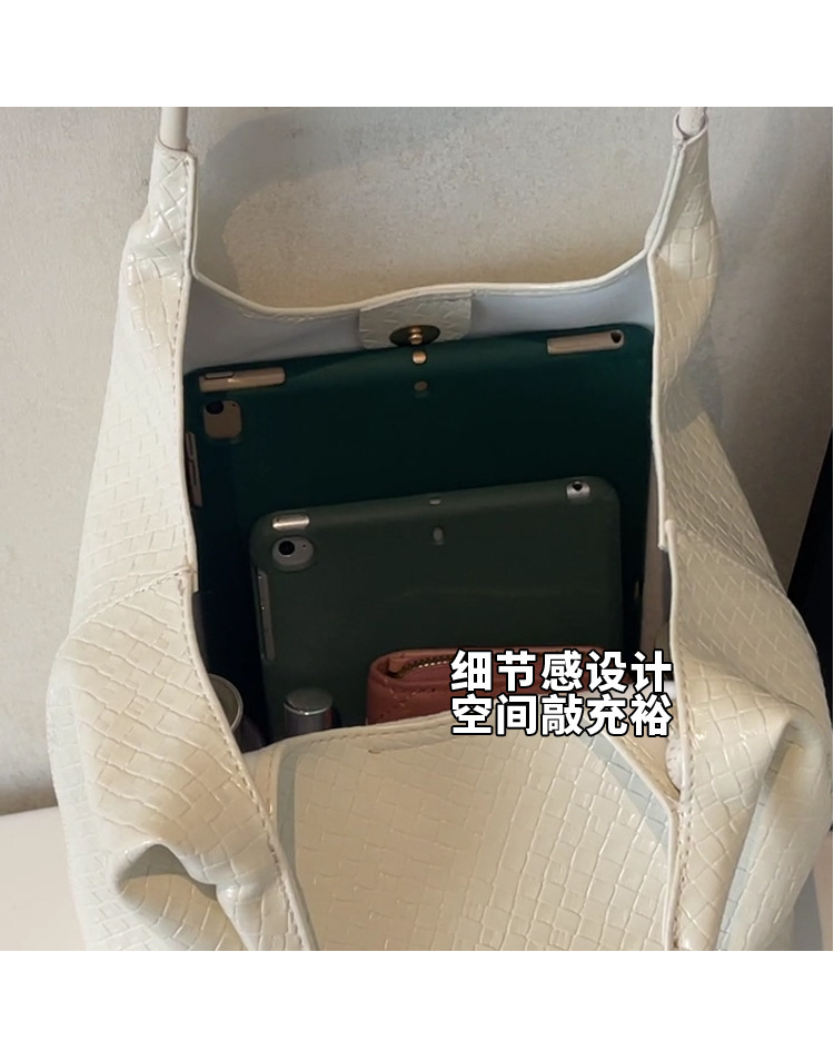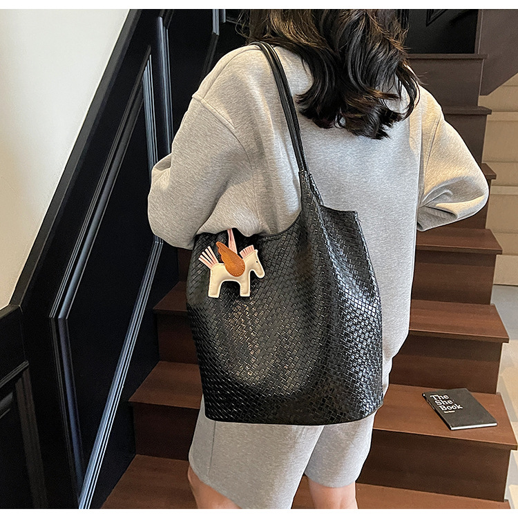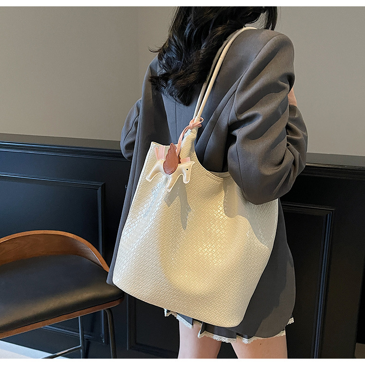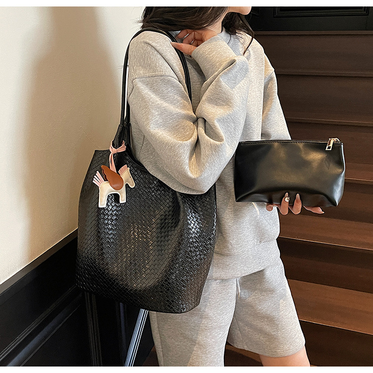 クロスボーダー織り柄大容量ワンショルダーポータブルバケットバッグ女性用2025新しい人気の通勤脇トートバッグ