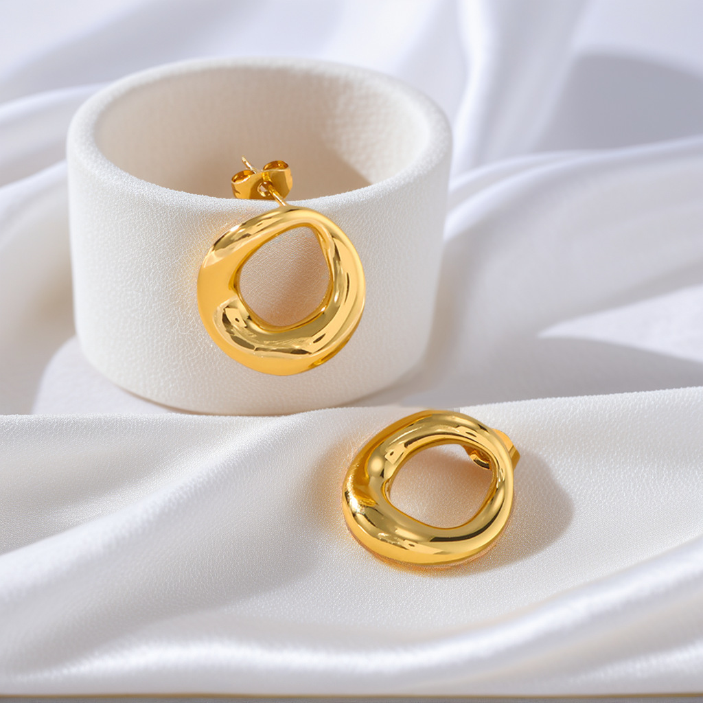 18Kゴールドメッキのチタン鋼の女性用幾何学イヤリング、軽い高級感と高級感のあるステンレス鋼のイヤリングの卸売を専門とする国境を越えた供給
