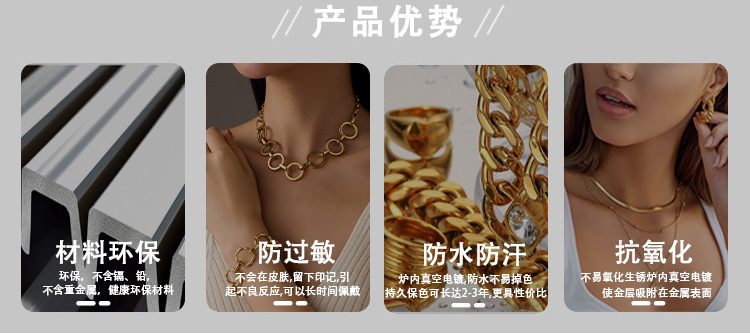ステンレスネックレス 鎖骨チェーン 真空メッキ 18Kゴールド チタン鋼 O字チェーン クロスチェーン 調整チェーン メーカー在庫