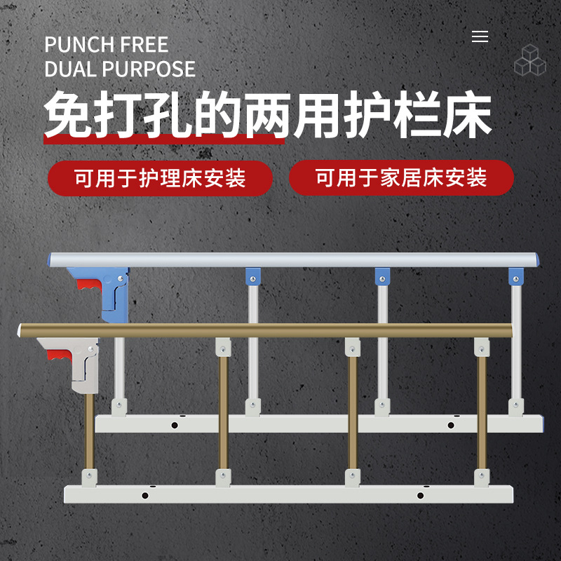 厚い折り畳み可能な老人がベッドサイドのガードレールの手すりを落としないようにする