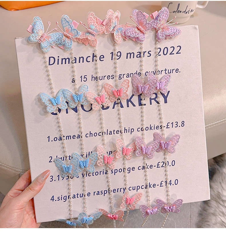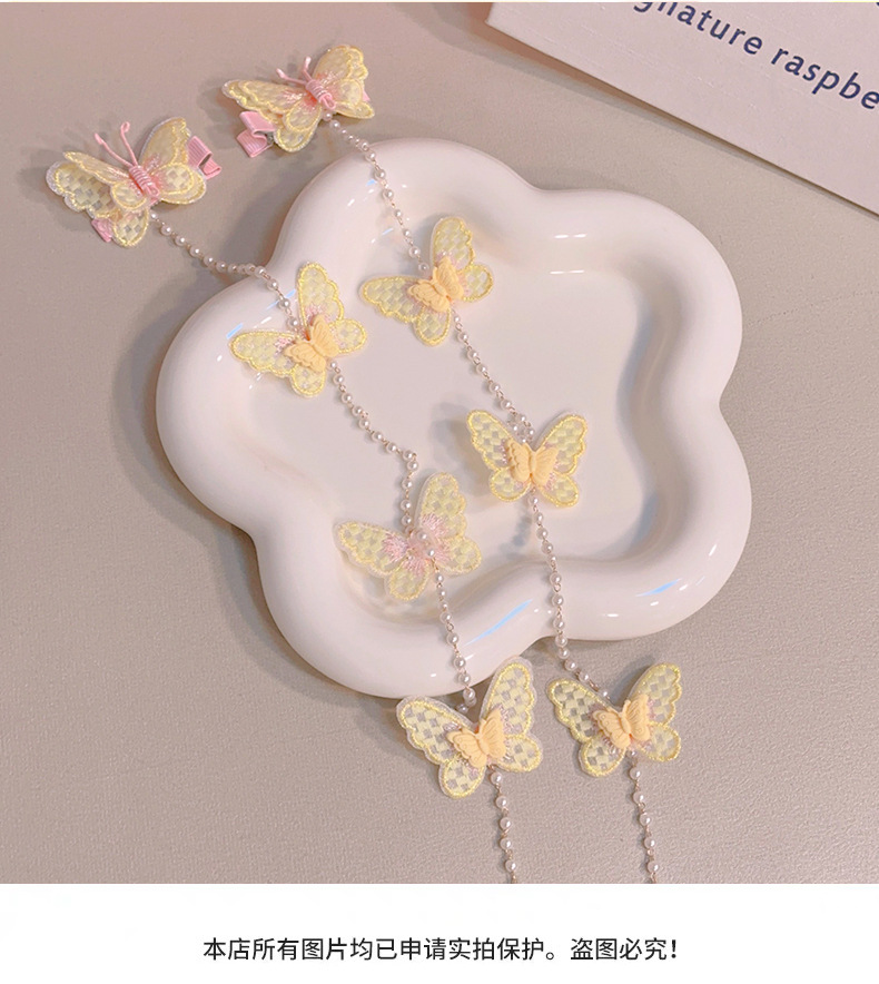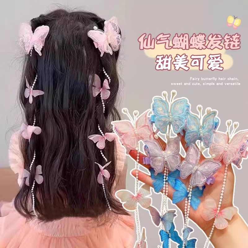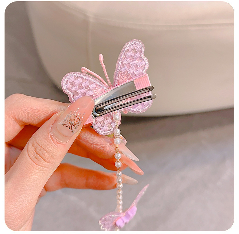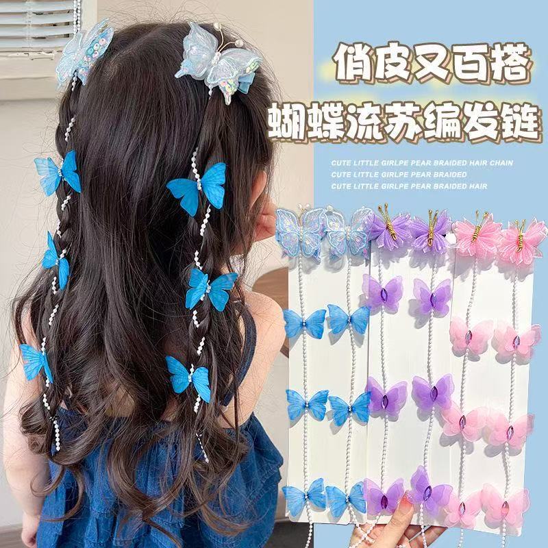 韓国版の子供用アクセサリー蝶真珠タッセル編み込みヘアチェーン手作りヘアピン蝶頭飾りハイエンドヘアピン
