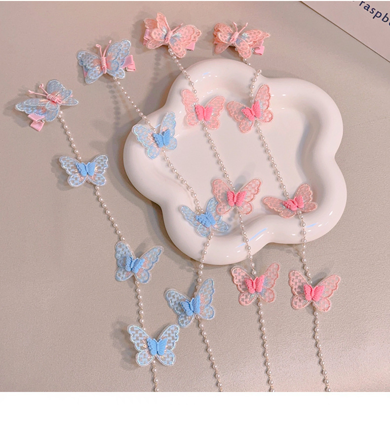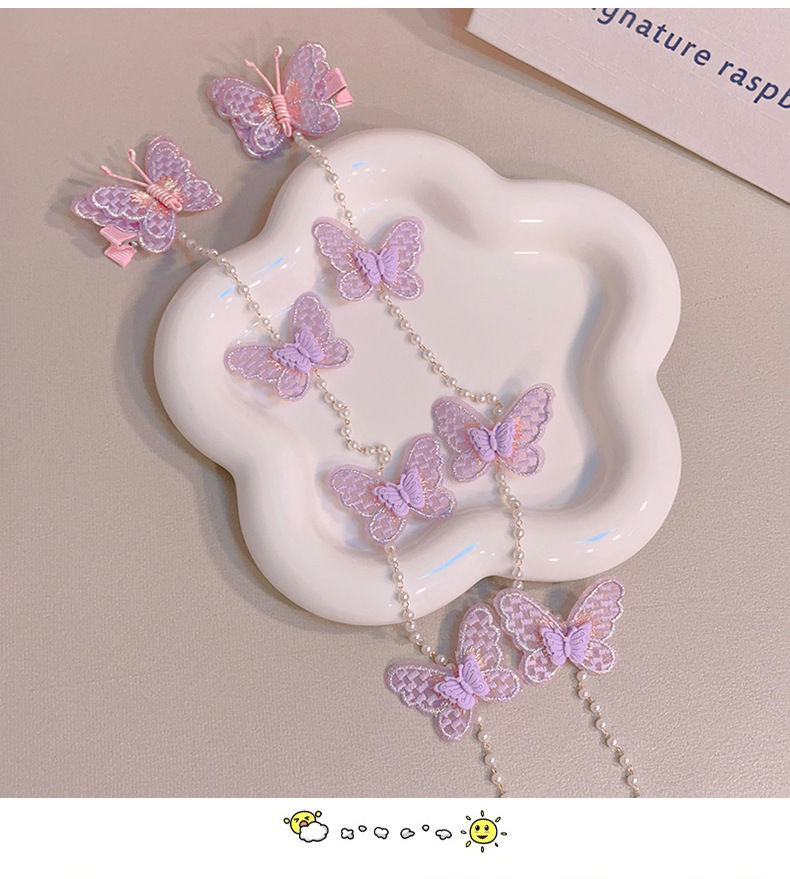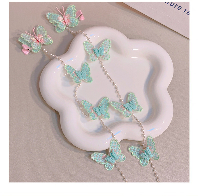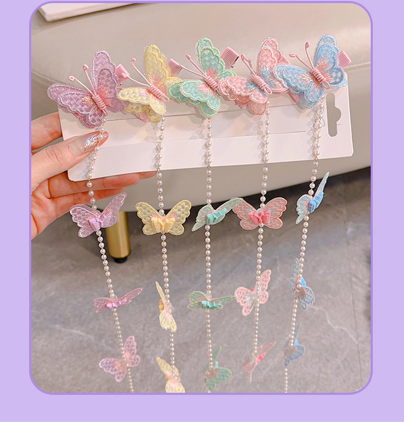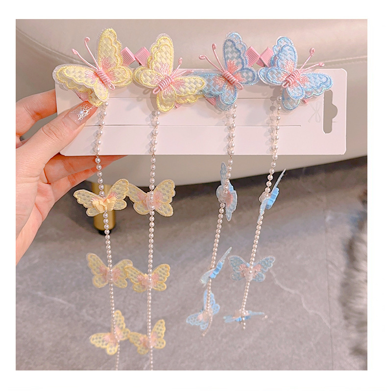 韓国版の子供用アクセサリー蝶真珠タッセル編み込みヘアチェーン手作りヘアピン蝶頭飾りハイエンドヘアピン