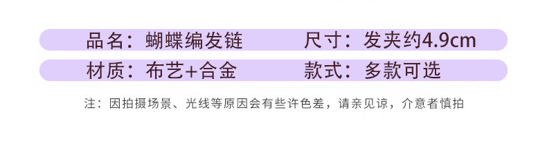 0565-1#ピンクの蝶々編み込みヘアチェーン 2個セット,0565-2#緑色の蝶々編み込みヘアチェーン 2個セット,0565-3 # 黄色い蝶の編み込みヘアチェーン 2個セット,0565-4#青い蝶の編み込みヘアチェーン 2 個,0565-5#紫色の蝶々編み込みヘアチェーン 2個セット