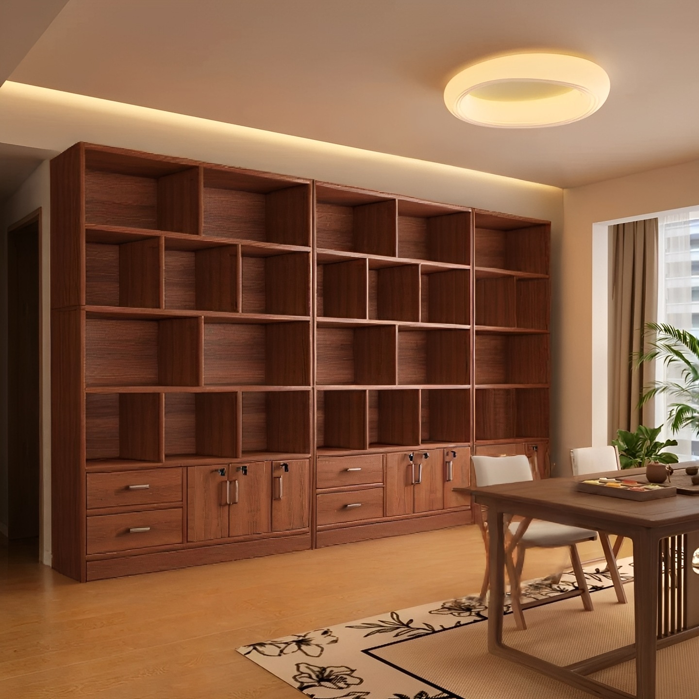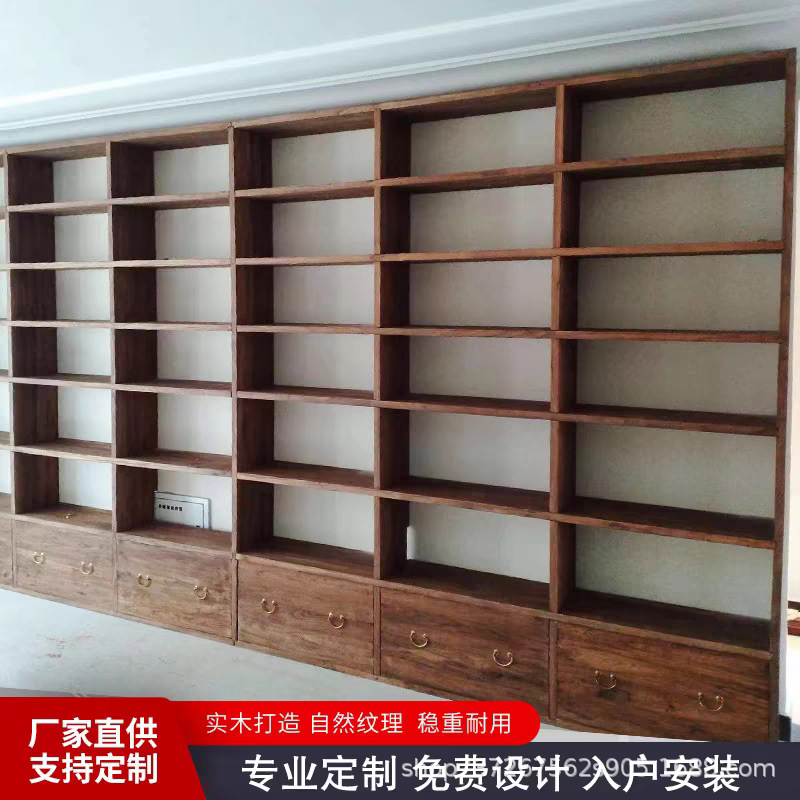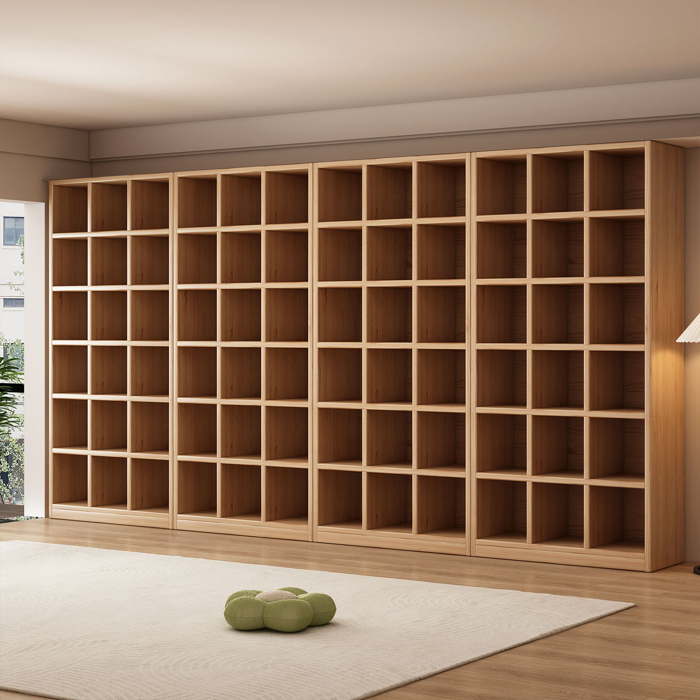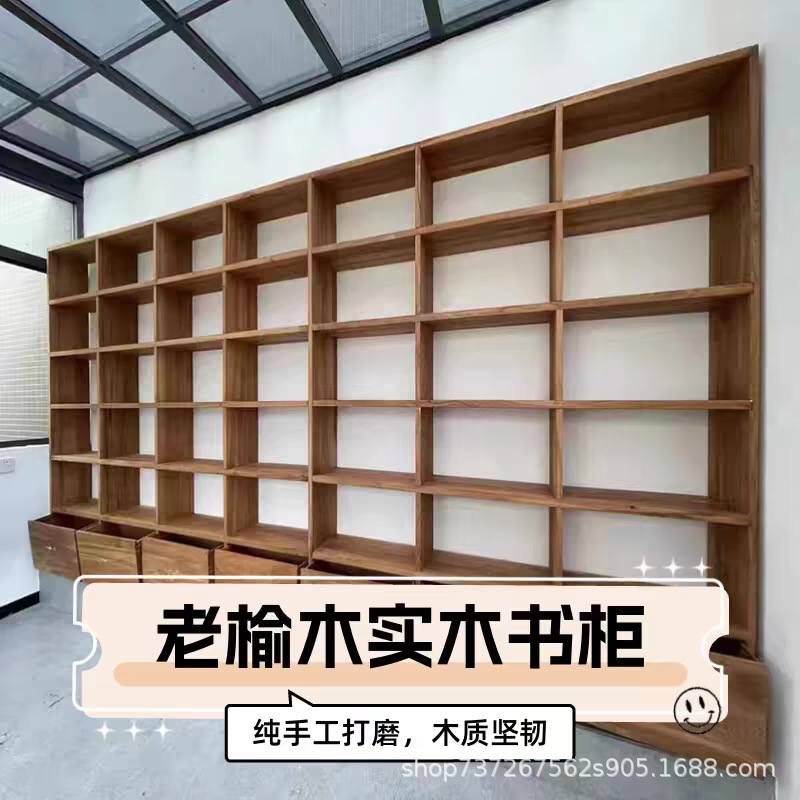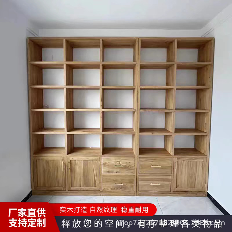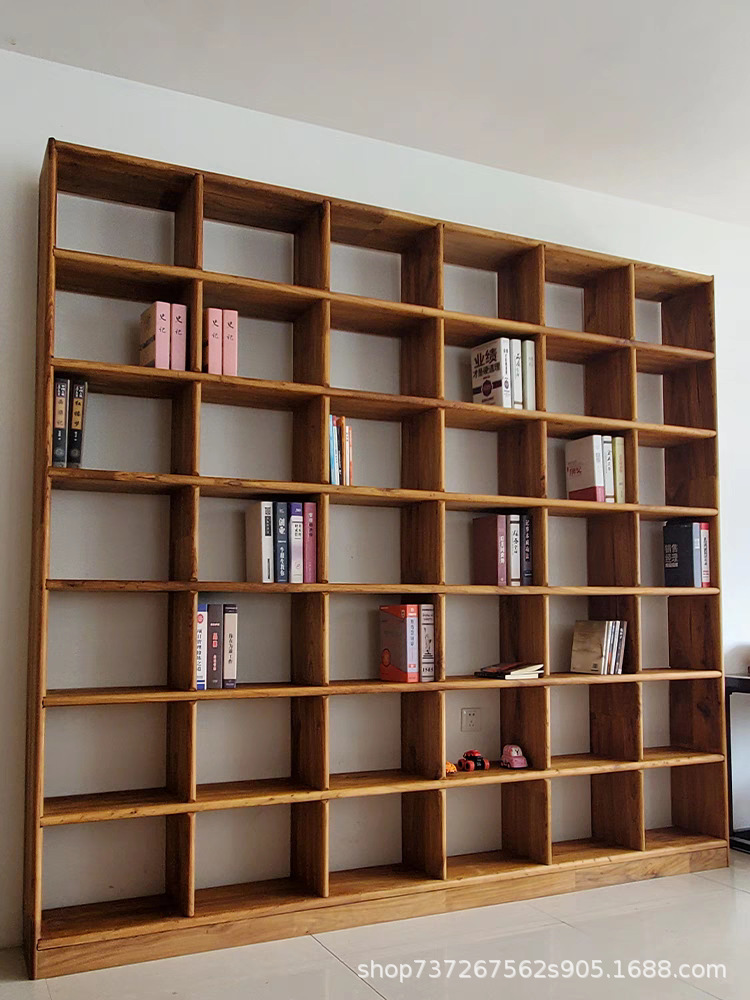 カスタム実木本棚老楡木松木本棚本棚壁いっぱい格子棚床置き棚メーカー直販