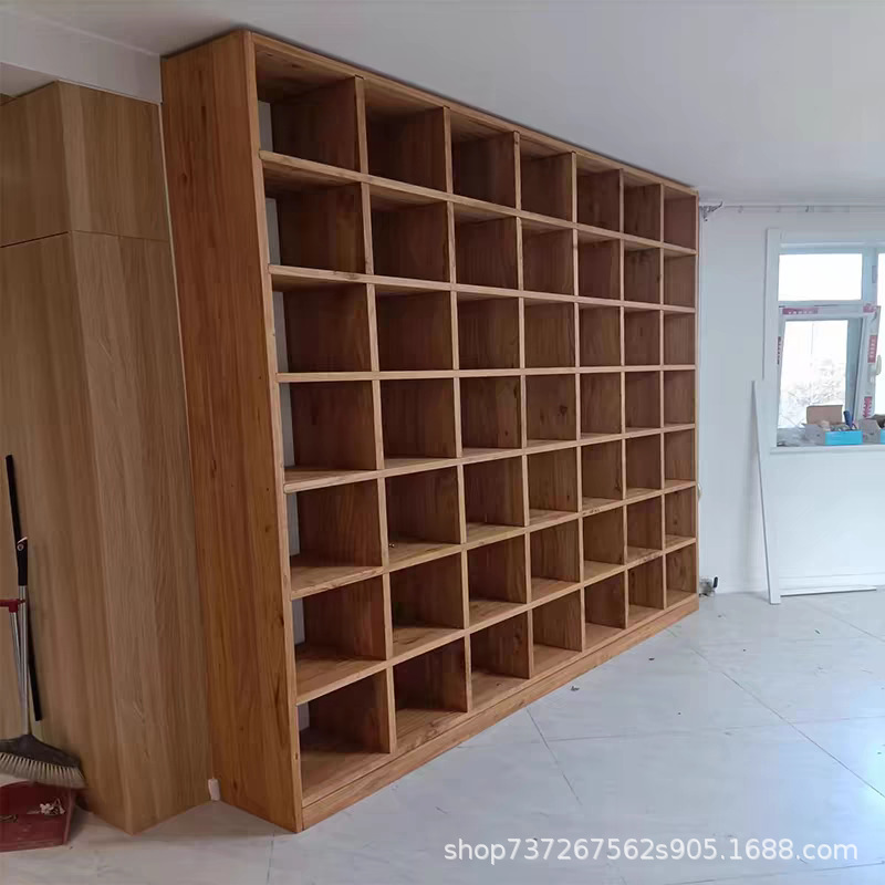 老榆木满墙格子书架定 制整面墙书柜实木收纳展示架书房置物架