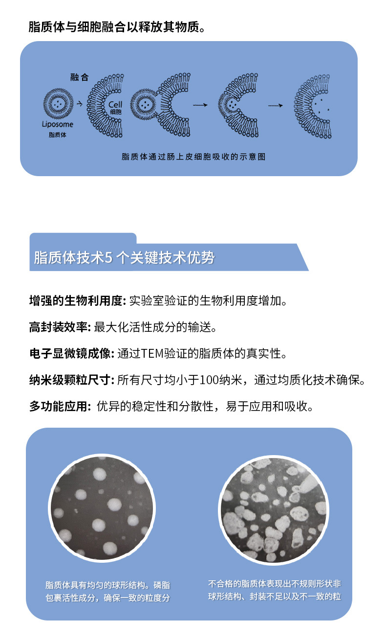 リポソームグルタチオンを13倍にバイオ利用性を向上させ、含有量を50/70%に供給