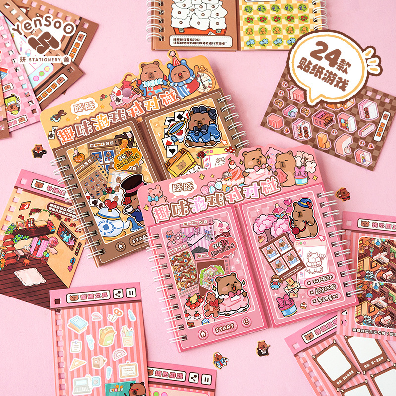卡皮巴拉微缩场景趣味游戏贴纸本高颜值立体造景小贴纸儿童益智本