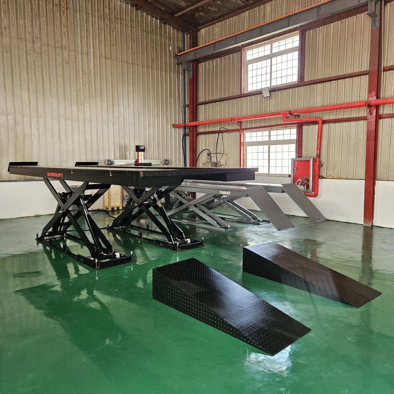 汽车6.5吨超薄子母大剪举升机面挖槽55吨剪式举升机3D四轮定位仪