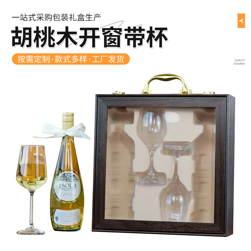 红酒包装盒礼盒木质礼品盒红酒木盒包装盒开窗透明红酒包装盒现货
