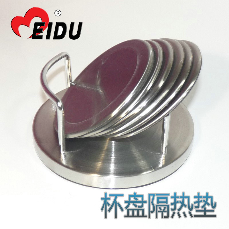 供給ステンレス鋼コースターダイニングテーブル滑り止めマット EVA ハンドル付き 6 個セットカッププレート断熱パッドドロップシッピング