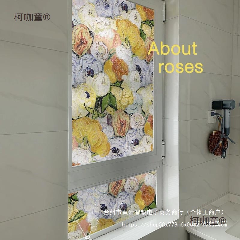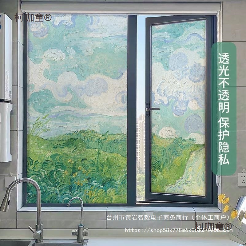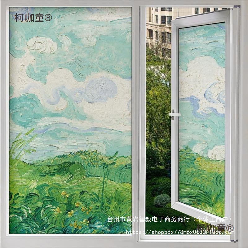 防窥透明浴室透光防走光梵高油画磨砂玻璃贴纸贴膜卫生间窗麦太保