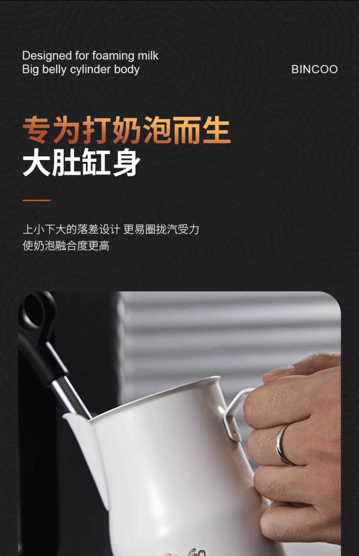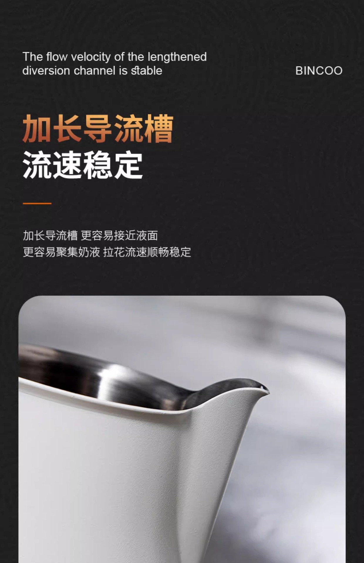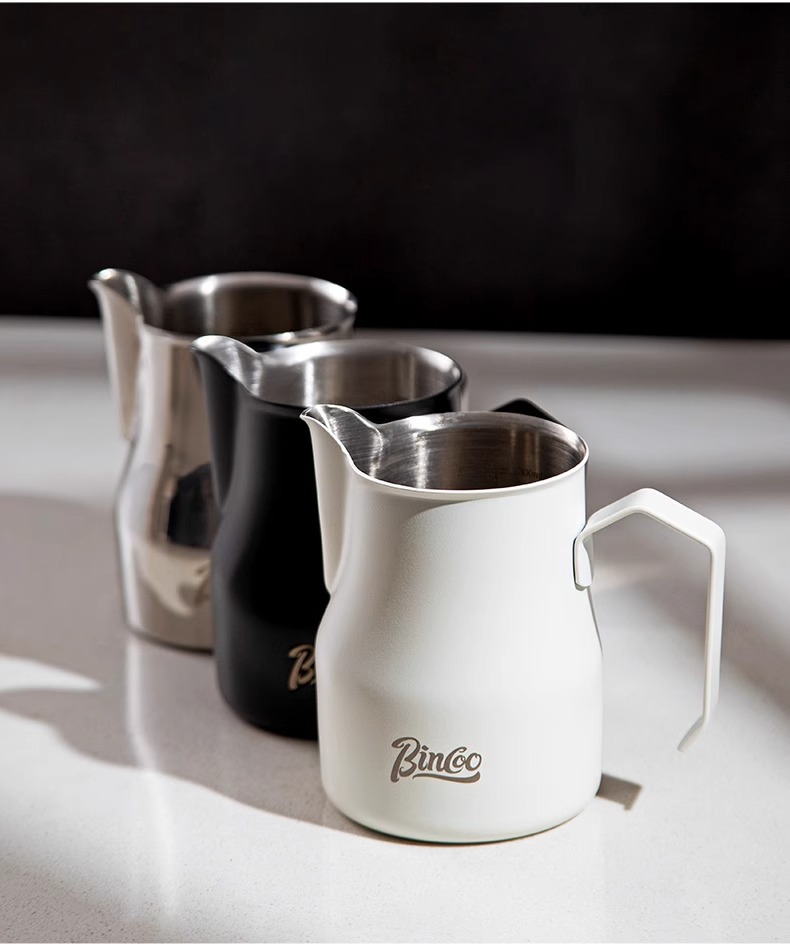 Bincooコーヒープルポットの尖った口のプルカップステンレス専門のミルク缶器具ミルクカップのプルカップの神器