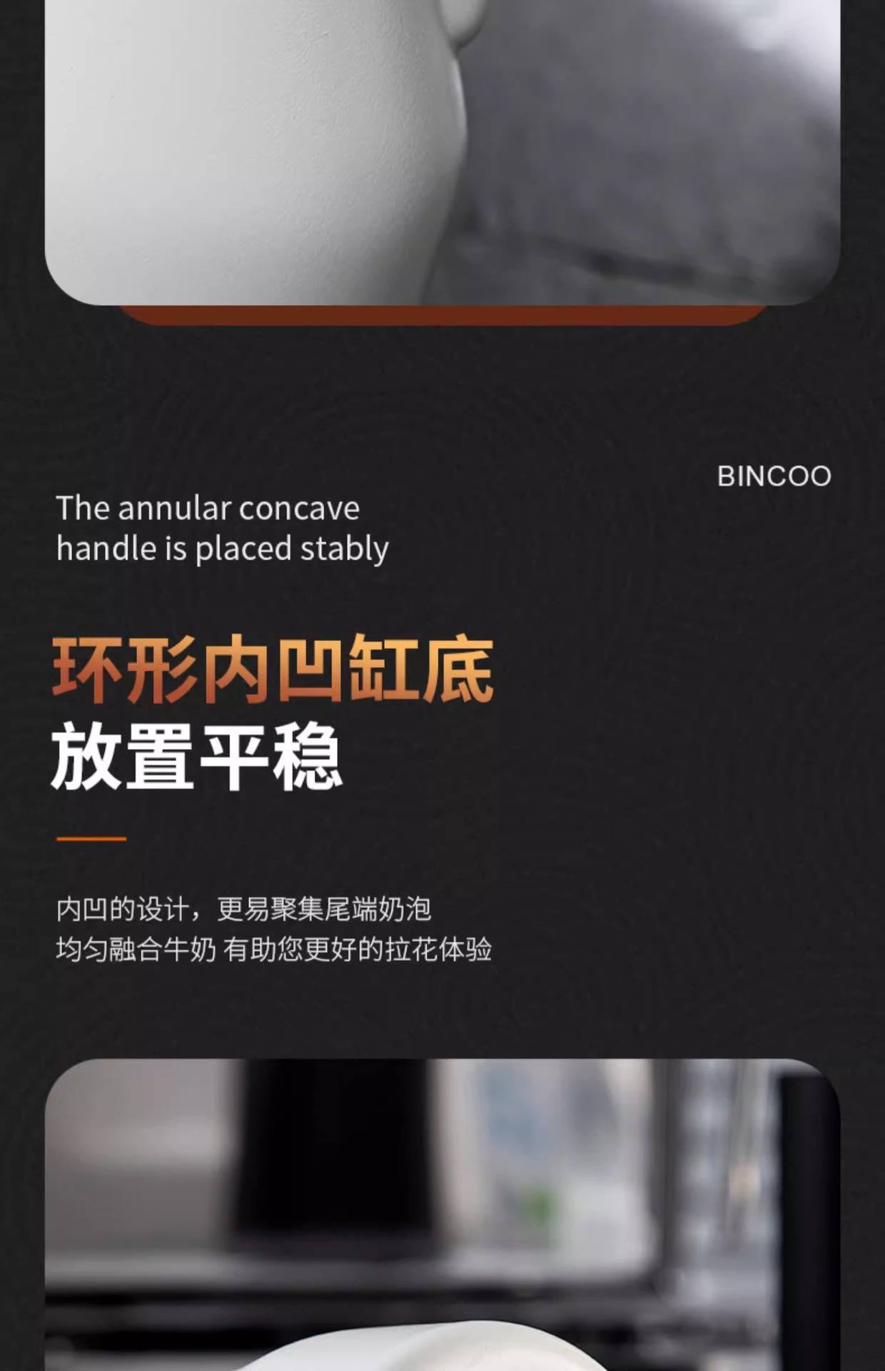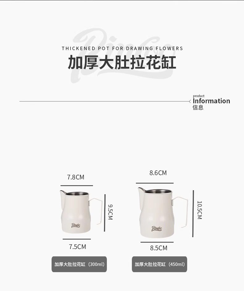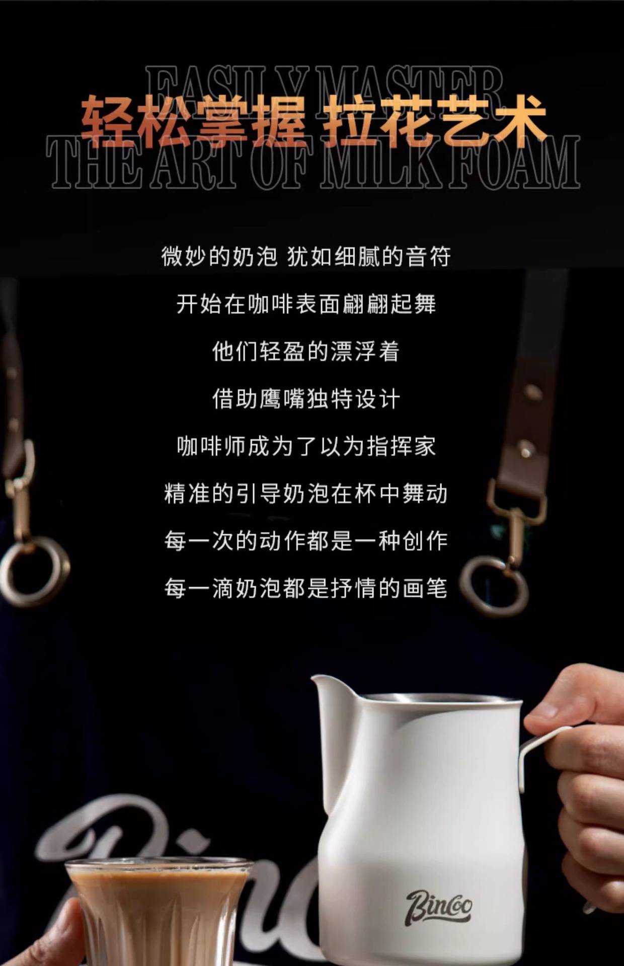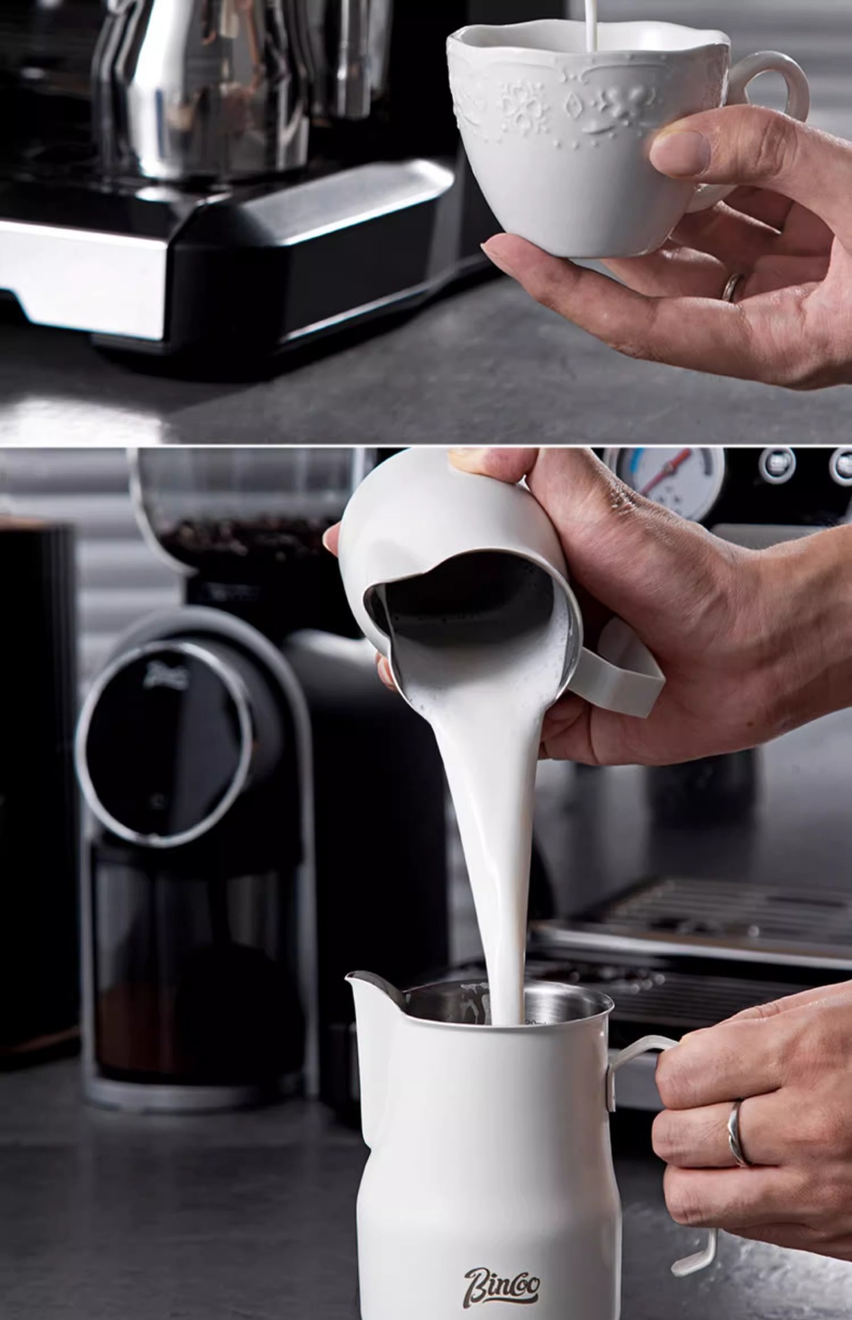 Bincooコーヒープルポットの尖った口のプルカップステンレス専門のミルク缶器具ミルクカップのプルカップの神器