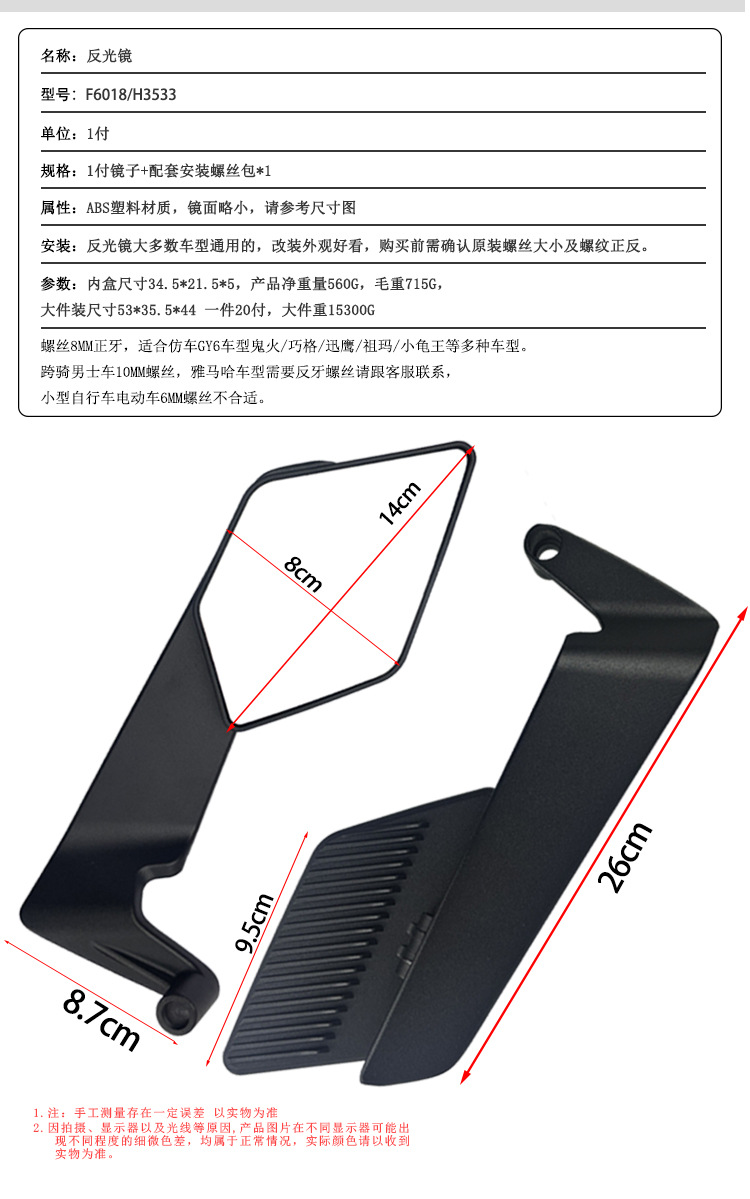 摩托车电动车改装新款定风翼后视镜塑料通用刀锋反光镜蓝镜紫镜