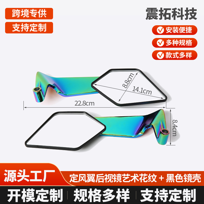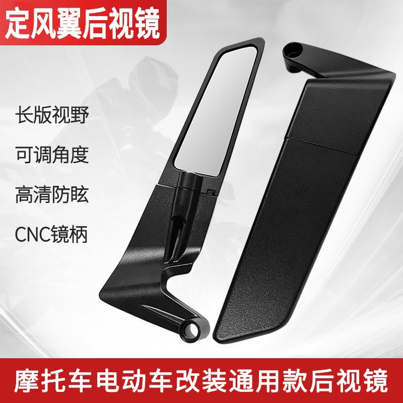 新款摩托车后视镜通用可旋转定风翼炫彩后视镜电动车铝合金改装件