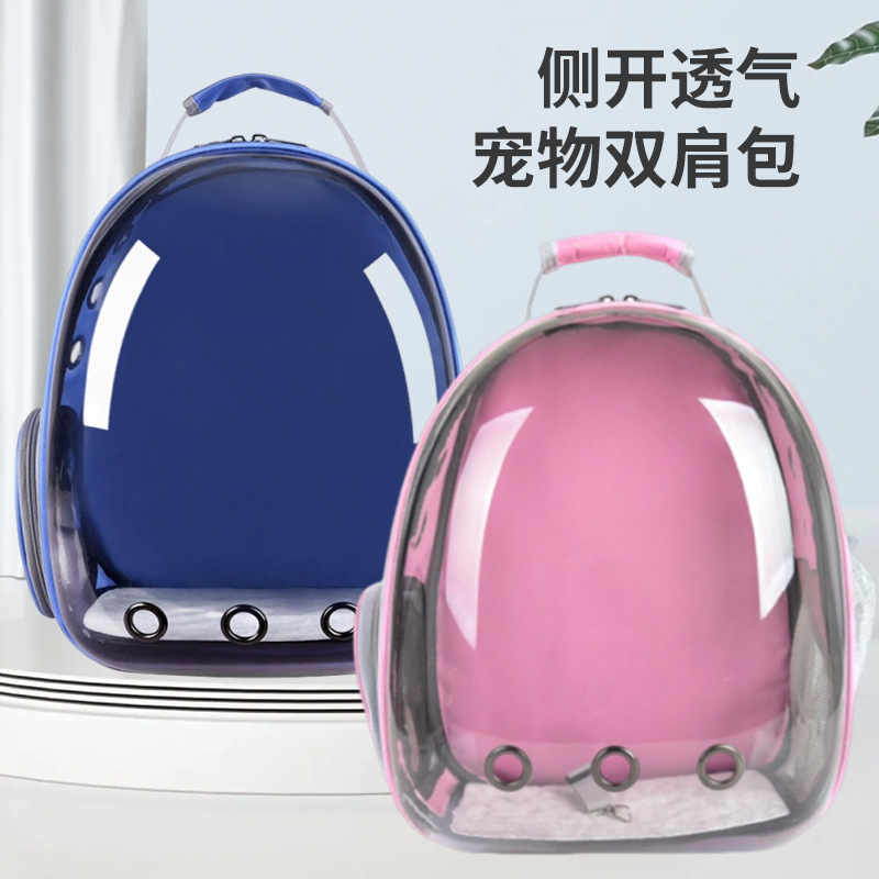 宠物猫包外出便携背包侧开透气宠物双肩包时尚透明全景批发猫包