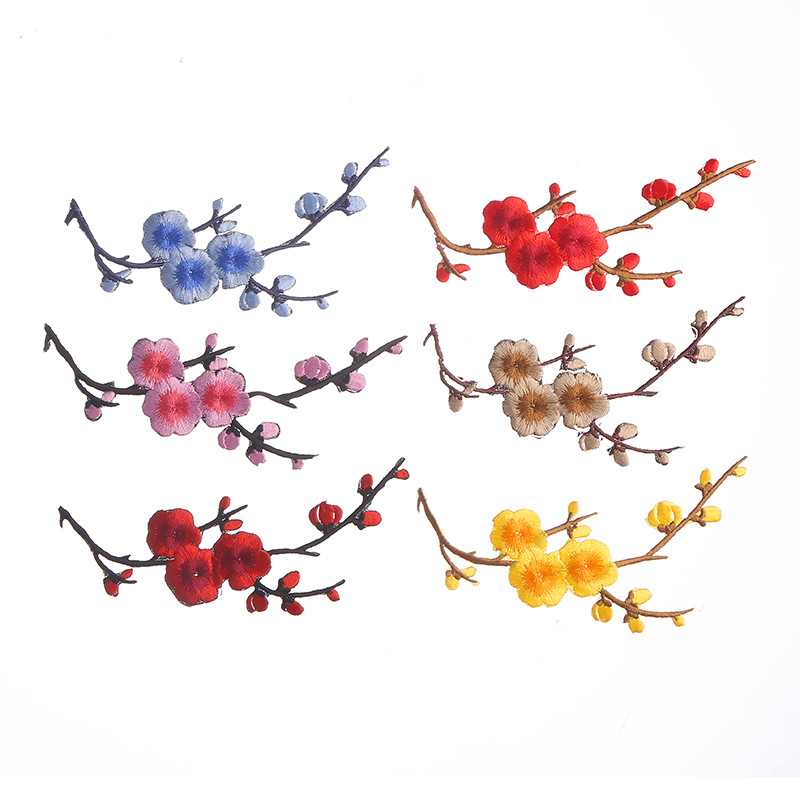 中国風の美しい梅の花の刺繍の布はチャイナドレスの漢服の装飾の刺繍の花を貼ってdiyの刺繍の服装のアクセサリの卸売りを貼ります。