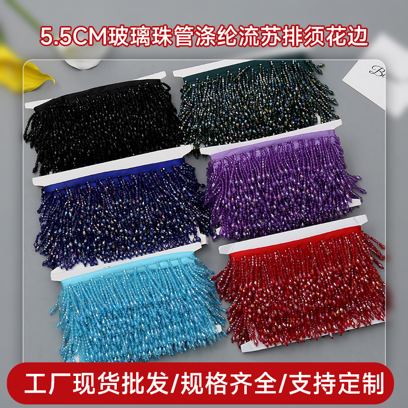 5.5cmガラスビーズ管ポリエステル流蘇排ひげレース紡績カーテンラテンダンスドレス演技服装補助材料
