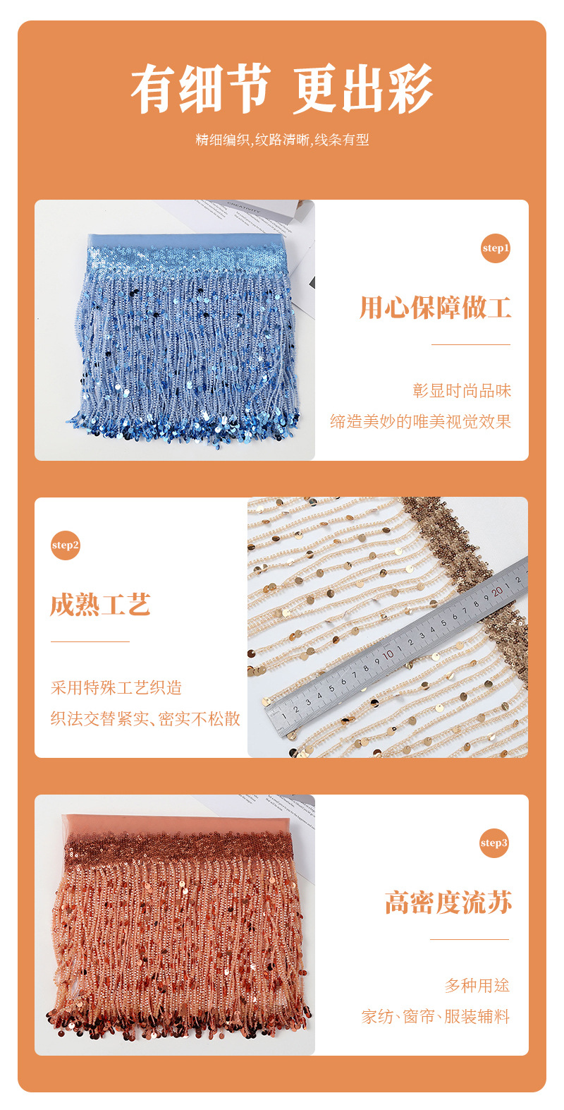 新しいスパンコール織物レース名族風創意16cm服飾補助材料ラテンダンス服飾部品卸売り