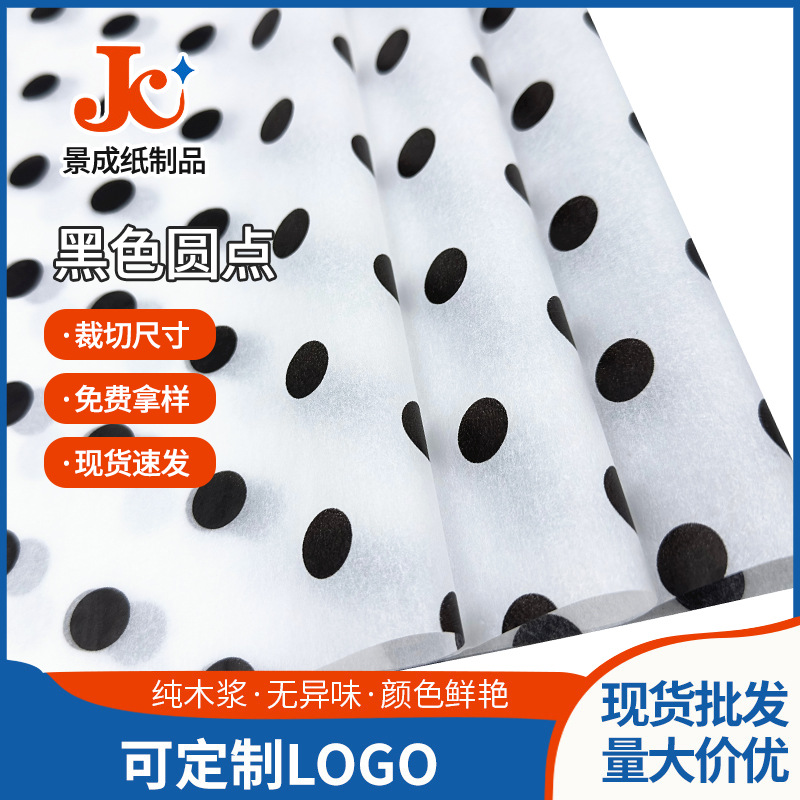 厂家黑色雪梨纸批发 简约白色包装波点图案17g拷贝纸