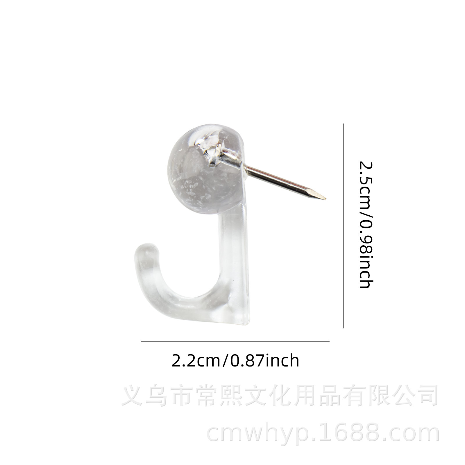 圆勾透明图钉挂钩形状按钉软木板毛毡板挂项链钥匙扣用钉子