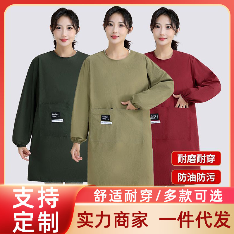 シンプルな長袖防水エプロン、欧米向け越境輸出、耐摩耗性、長持ち、屋台や家庭用エプロン、長袖エプロン