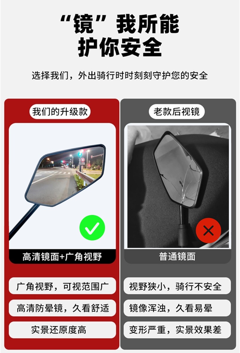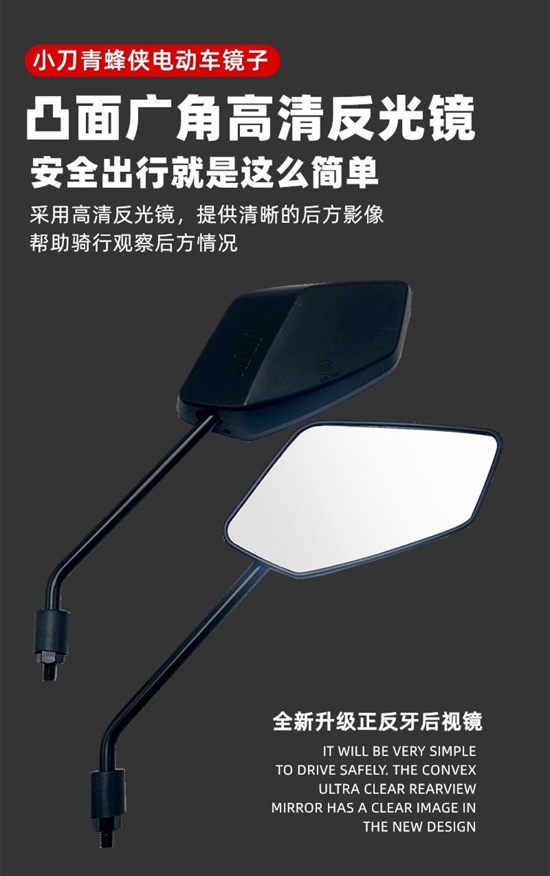 S5电动车后视镜电瓶车高清反光镜电动踏板车三轮车倒车镜观后镜
