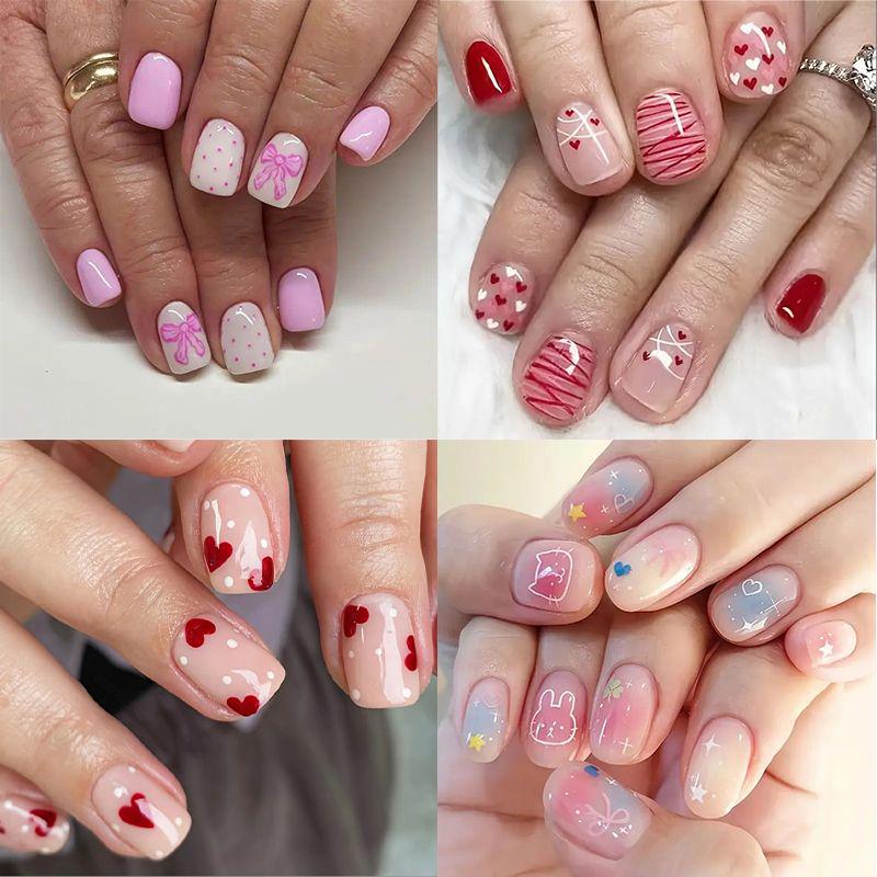 クロスボーダーネイルチップ 欧米バレンタインデーコレクション ハート柄 波点柄 フレンチスタイル ウサギ 猫柄 ショートタイプ ウェアラブルネイルチップ 卸売
