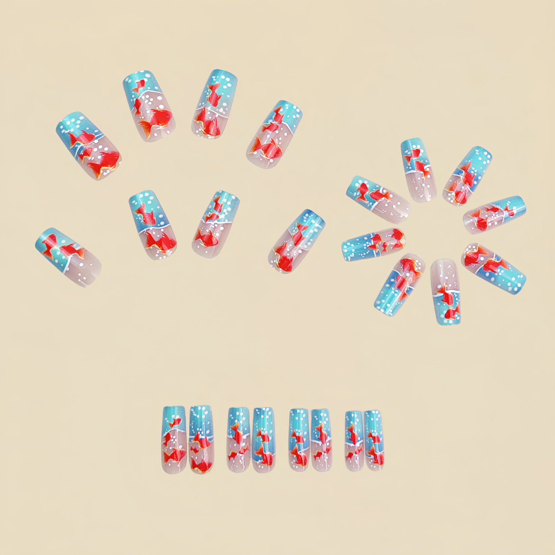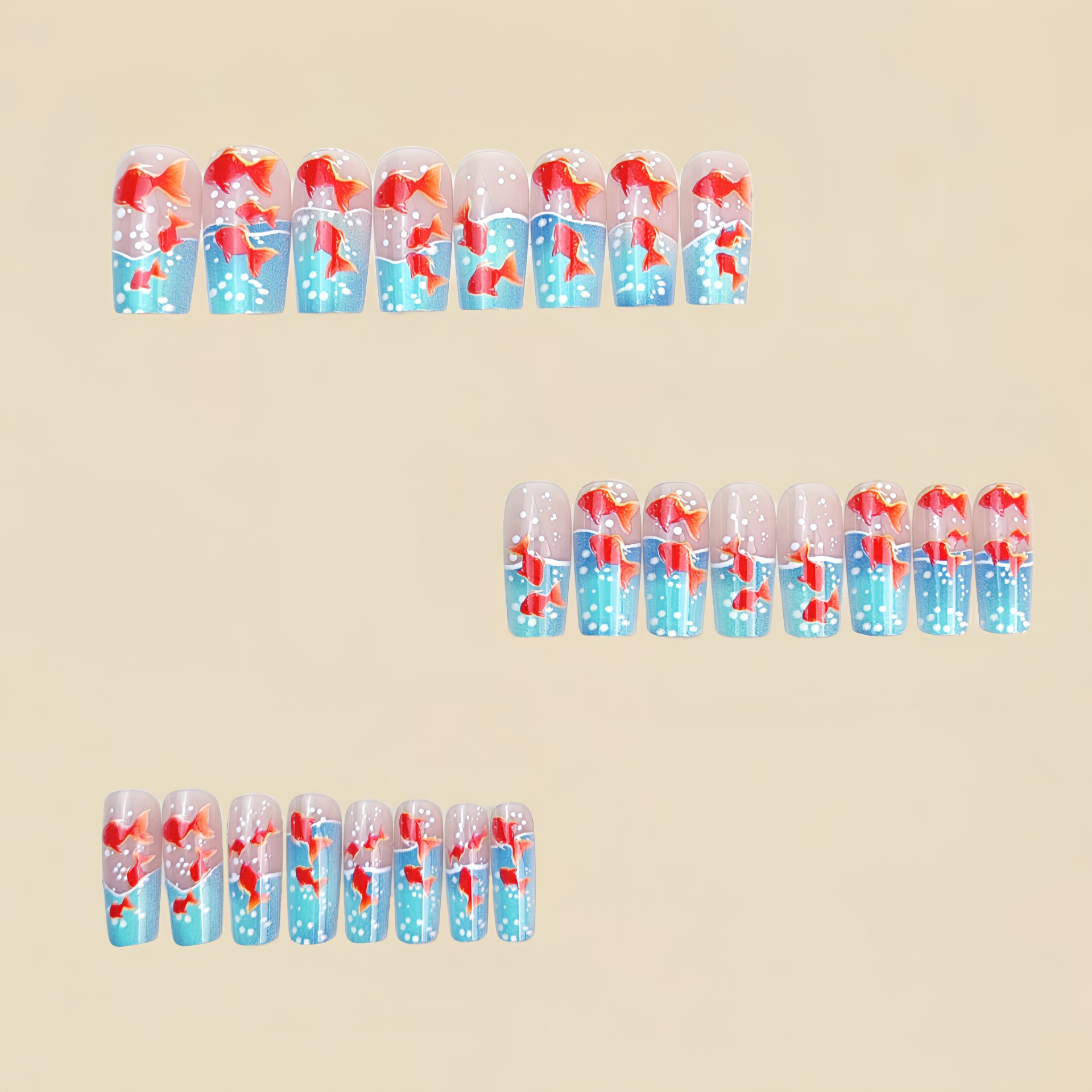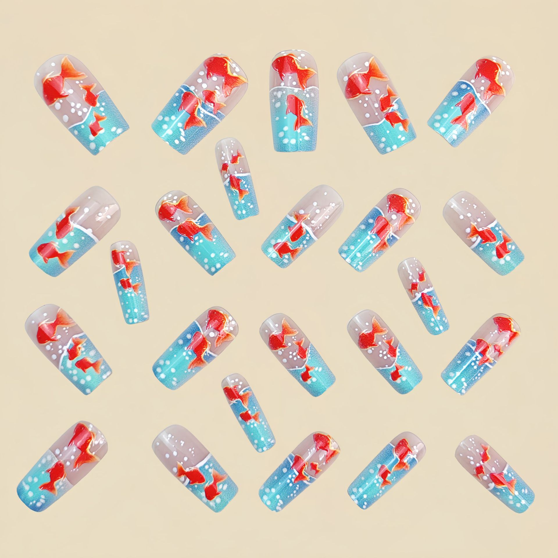 WM-256 バブル金魚偽爪ショート T クロスボーダー夏ブルーオーシャン子供っぽいかわいいウェアラブルネイル卸売