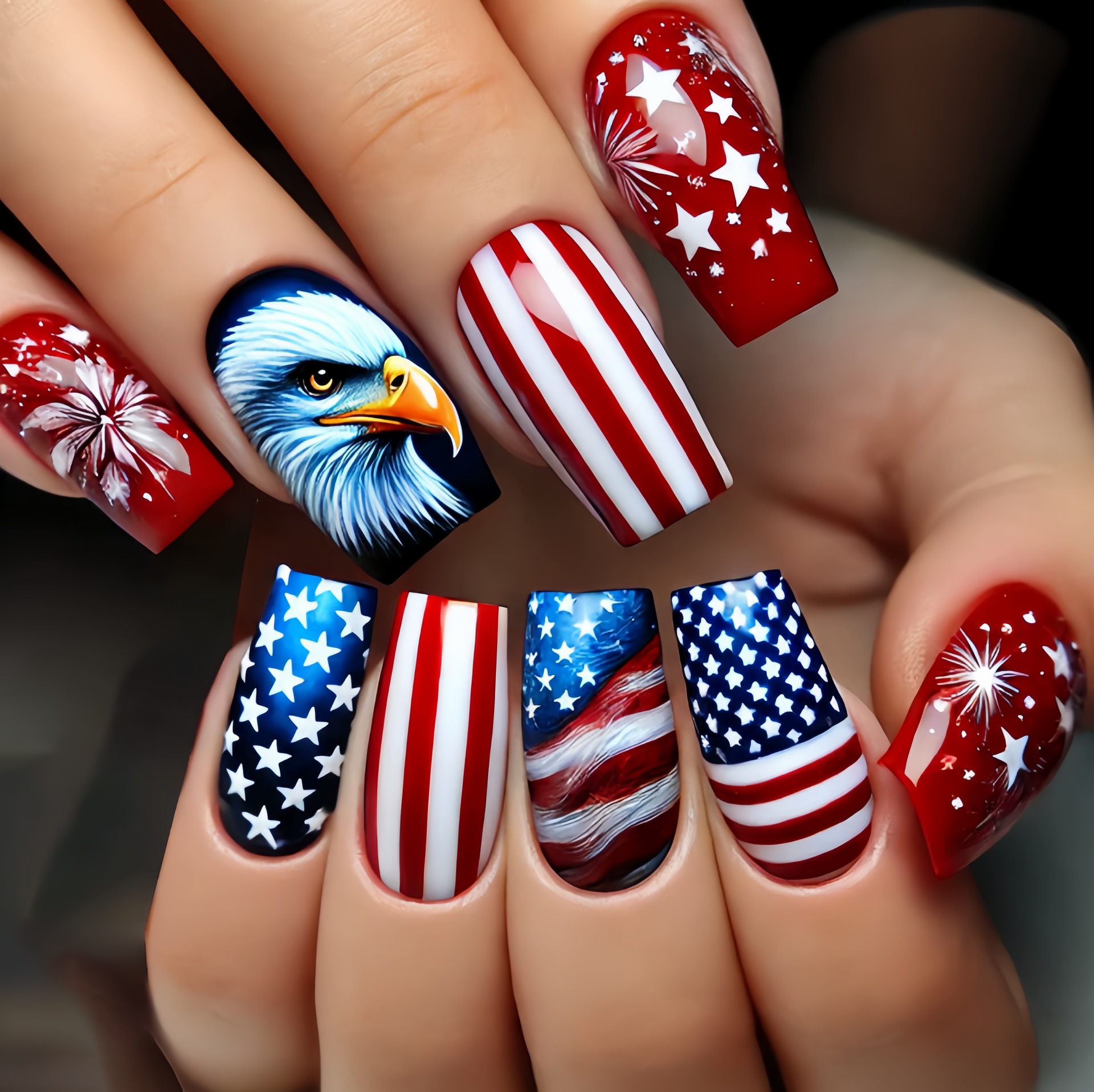 中長欧角ネイルシール独立日ネイルシール白っぽい星の縞ネイルシールが可能です