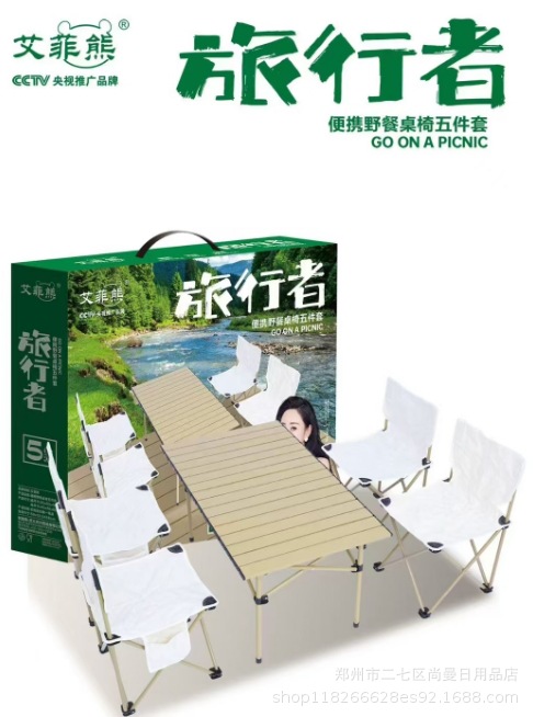 商品番号 エフィー ベア トラベラー テーブルと椅子の 5 点セット、スチール パイプ + オックスフォード布ロング テーブル (95*55*50) 4 セット/箱