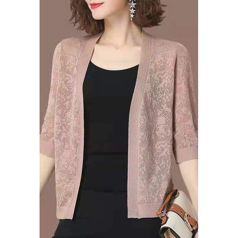 ママのカーディガン、レディースショートトップ、おしゃれな薄手のショール、スカート付き夏、高貴なアイスシルクニットカーディガン