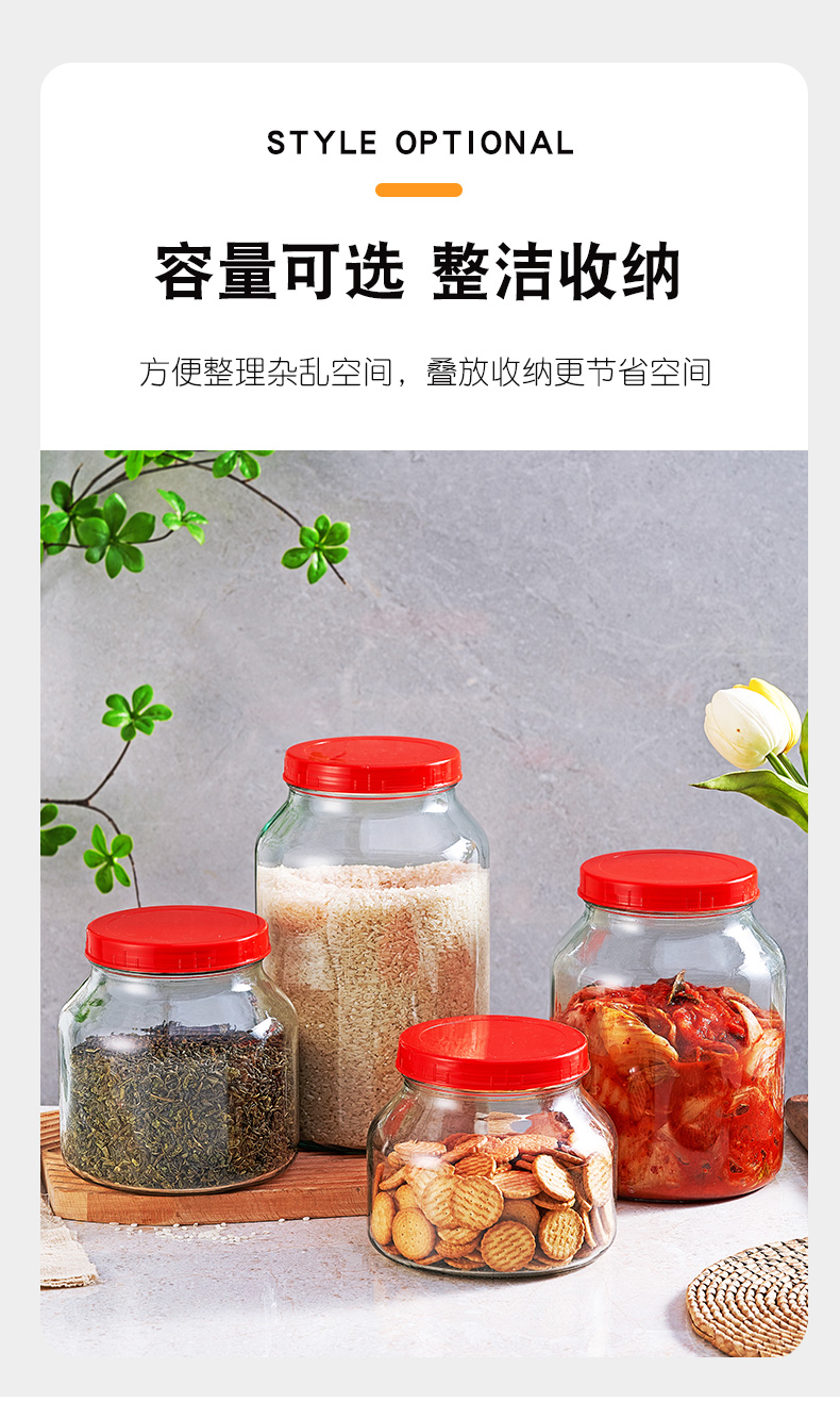 ガラス密封瓶、食品グレードのピクルス瓶、雑穀保存瓶、ピクルス保存瓶、蓋付き雑穀空瓶、マリネニンニク