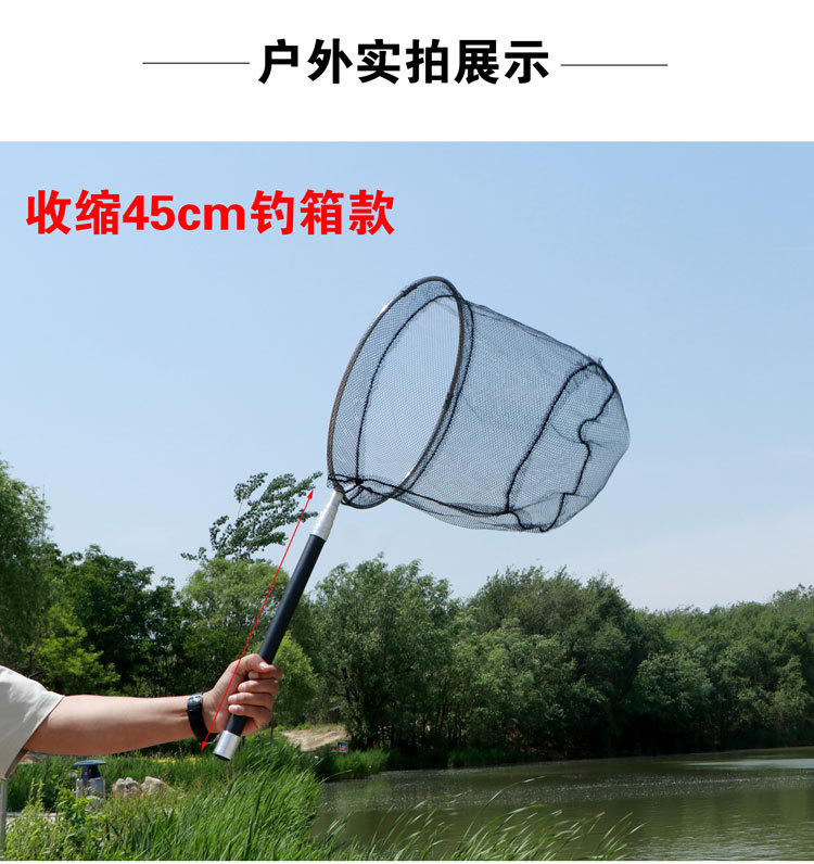 碳素巨物抄网竿短节抄网杆超轻加粗超硬大物抄网杆伸缩杆收缩超短