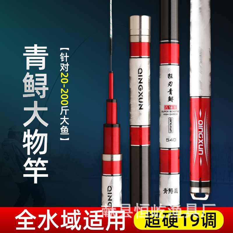 大物竿青超軽量10h釣竿巨物超硬暴力竿12h 19調台釣竿高炭素大物竿