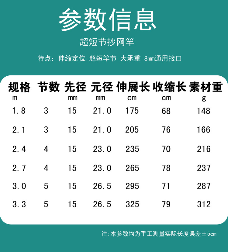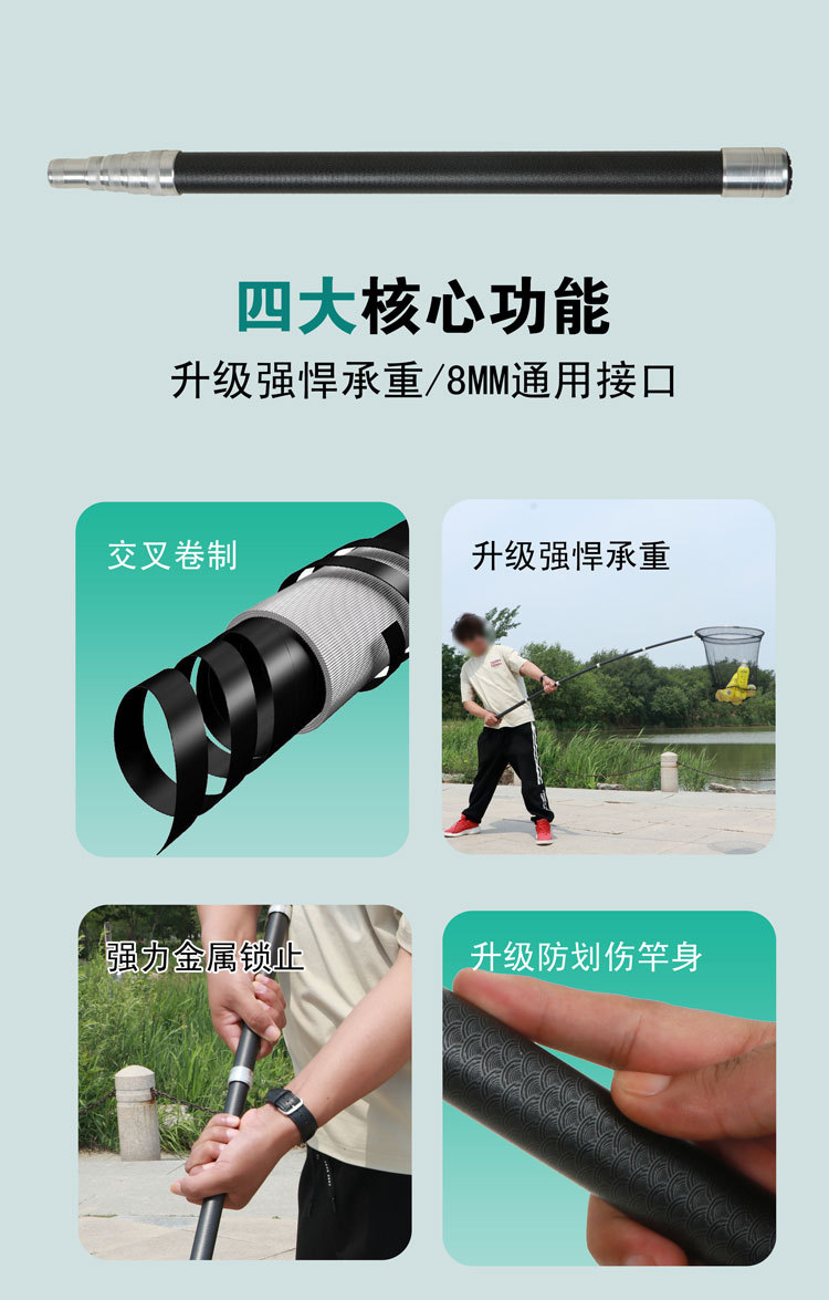 短节伸缩大物抄网竿加厚碳素超硬便携抄网杆捕鱼杆加固接口通用