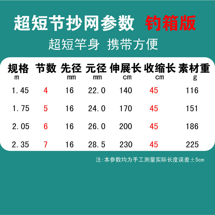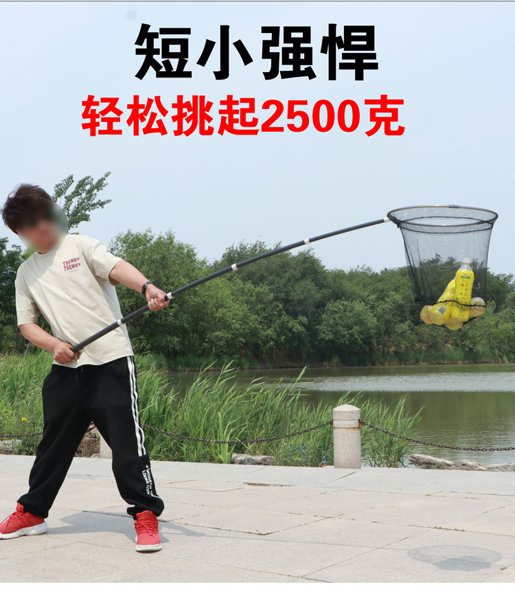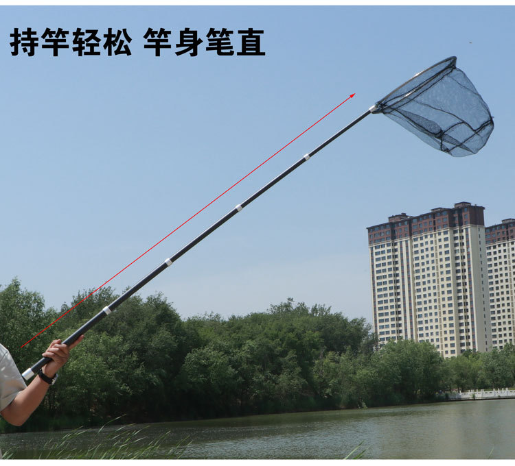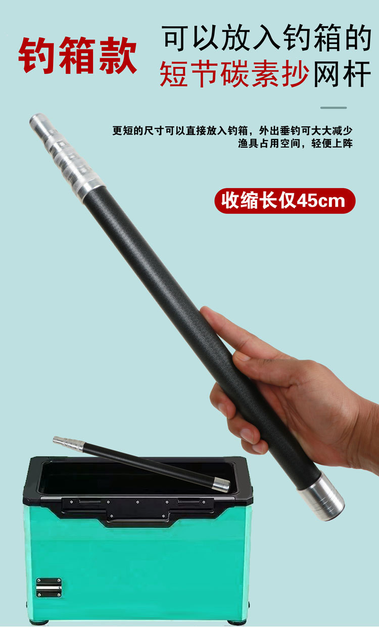短節伸縮式大型網竿、厚手カーボン超硬質網竿、釣り竿、伸縮式超硬質カーボンロッド