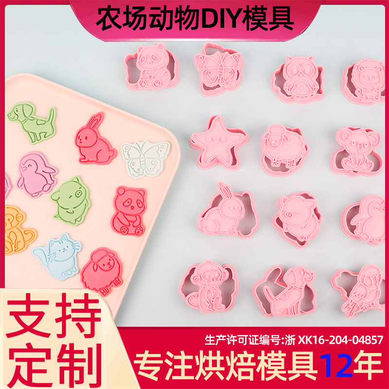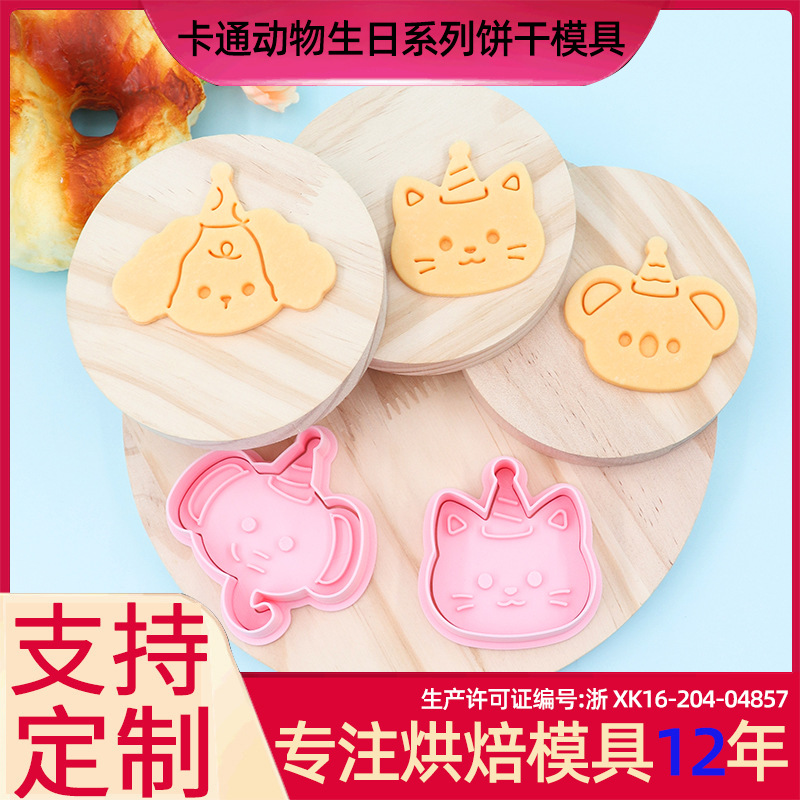 卡通动物生日系列饼干模具3D卡通饼干模具DIY黏土仿真印花饼干