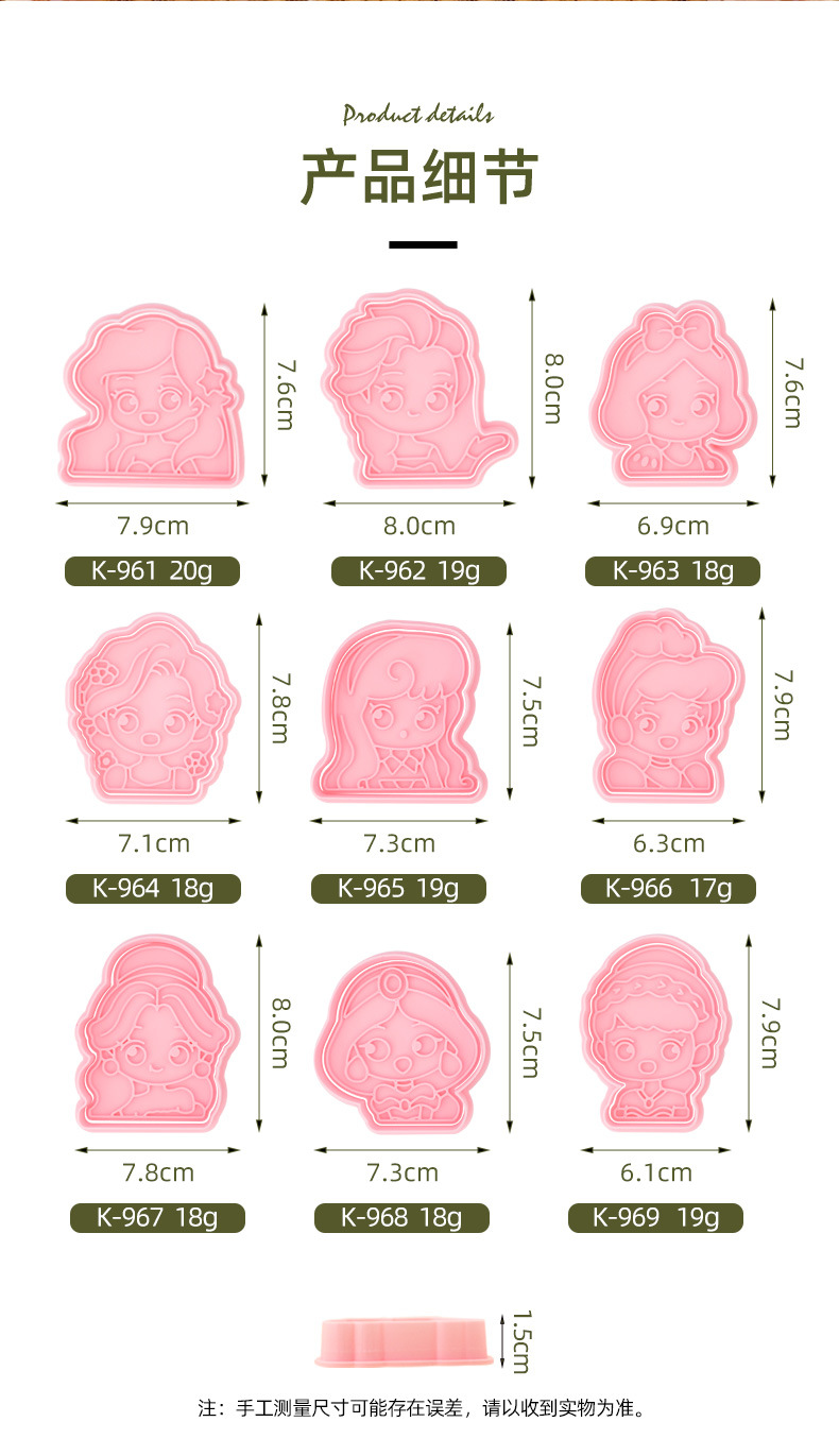 漫画のプリンセスアリエル、白雪姫、クッキー型、シンディベール、3D漫画クッキー型、DIY模擬印刷
