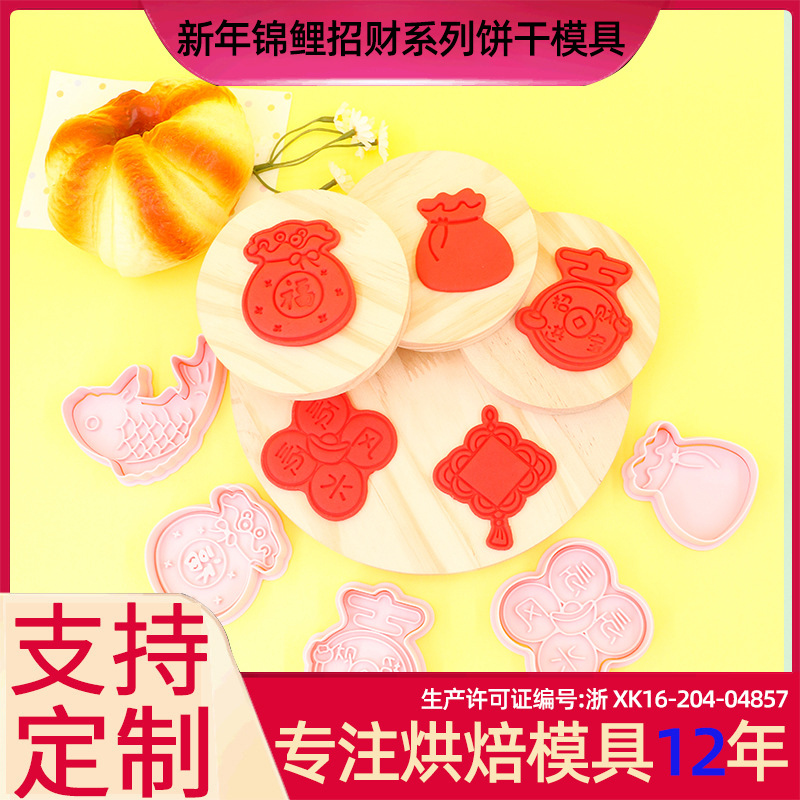 新年锦鲤招财系列饼干模具3D卡通饼干模具DIY招财进宝仿真印花