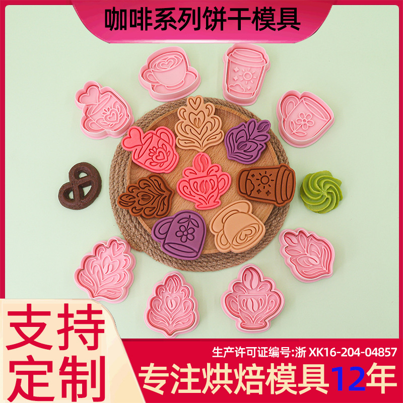 咖啡系列饼干模具咖啡豆3D卡通饼干模具DIY仿真咖啡杯印花饼干